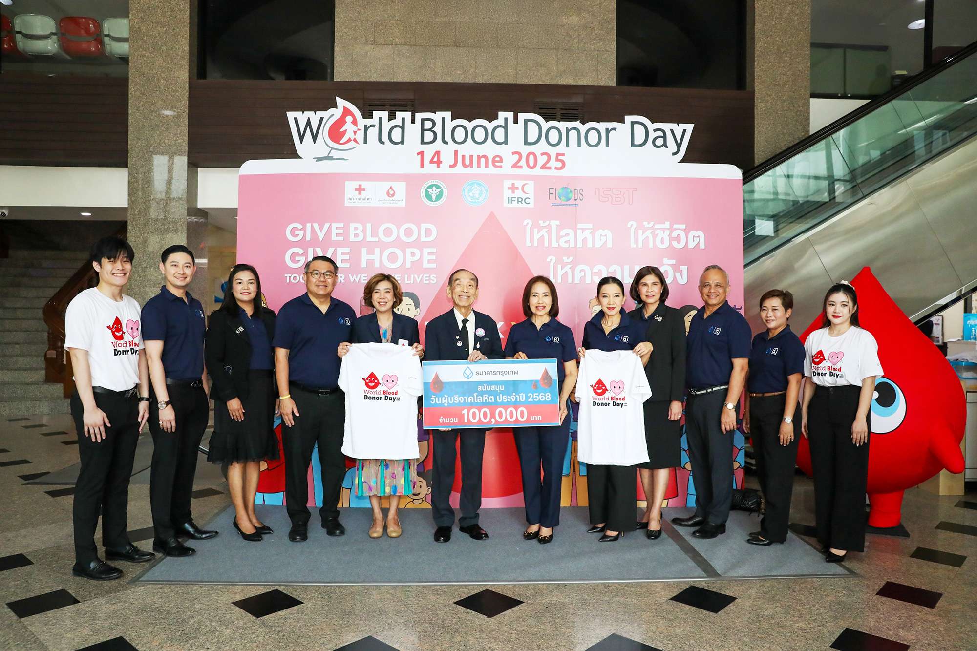 นางสาวพจณี คงคาลัย ผู้ช่วยผู้จัดการใหญ่ สายลูกค้าบุคคล นายอภิวัฒน์ ปุณโณปกรณ์ และ นายสุวิทย์ อินทรเฉลิม เจ้าหน้าที่บริหารระดับ Vice President ฝ่ายการประชาสัมพันธ์ นางรสริน มณีรัตน์ เจ้าหน้าที่บริหารระดับ Assistant Vice President ผู้จัดการสาขาสำนักงานใหญ่ สีลม นางสาวสุนันฐินี แสนคำ เจ้าหน้าที่บริหารระดับ Assistant Vice President ผู้จัดการสาขาสุรวงศ์ ธนาคารกรุงเทพ จำกัด (มหาชน) มอบเงินสนับสนุนการจัดทำเสื้อยืดที่ระลึกเนื่องใน “วันผู้บริจาคโลหิตโลก” จำนวน 100,000 บาท ต่อเนื่องเป็นปีที่ 14 เพื่อมอบให้ผู้ที่มาร่วมบริจาคโลหิต ในช่วงสัปดาห์ “วันผู้บริจาคโลหิตโลก” ระหว่างวันที่ 9 – 14 มิถุนายน 2568 โดยมี ศาสตราจารย์กิตติคุณ นายแพทย์ชัยเวช นุชประยูร ผู้ช่วยเลขาธิการ สภากาชาดไทย นางสาวปิยนันท์ คุ้มครอง ผู้ช่วยผู้อำนวยการด้านการจัดหาโลหิตและภาพลักษณ์องค์กร ศูนย์บริการโลหิตแห่งชาติ สภากาชาดไทย เป็นผู้รับมอบ พร้อมนำพนักงาน “บัวหลวงจิตอาสา” ร่วมเป็นอาสาสมัครแจกเสื้อยืดที่ระลึก อำนวยความสะดวก และแนะนำขั้นตอนในการบริจาคโลหิตให้แก่ประชาชนที่ไปบริจาคโลหิต ณ ศูนย์บริการโลหิตแห่งชาติ สภากาชาดไทย ถนนอังรีดูนังต์ กรุงเทพฯ