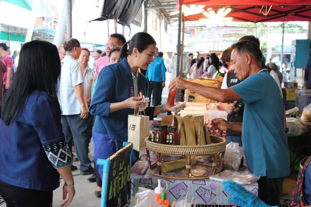 ก่อนเสร็จสิ้นภารกิจในจังหวัดลำพูน นางสาวธีรรัตน์ ได้เดินเยี่ยมชมตลาดหน้าสำนักงานองค์การตลาด พบปะพูดคุยกับพ่อค้าแม่ค้าและเกษตรกรในพื้นที่อย่างเป็นกันเอง รับฟังความคิดเห็นและข้อเสนอแนะเกี่ยวกับปัญหาในการประกอบอาชีพ พร้อมกล่าวให้กำลังใจ ว่า “เกษตรกรไทยคือรากฐานสำคัญของประเทศ รัฐบาลพร้อมสนับสนุนทุกกลไกเพื่อให้พี่น้องเกษตรกรสามารถยืนหยัดได้อย่างมั่นคงในทุกสถานการณ์”