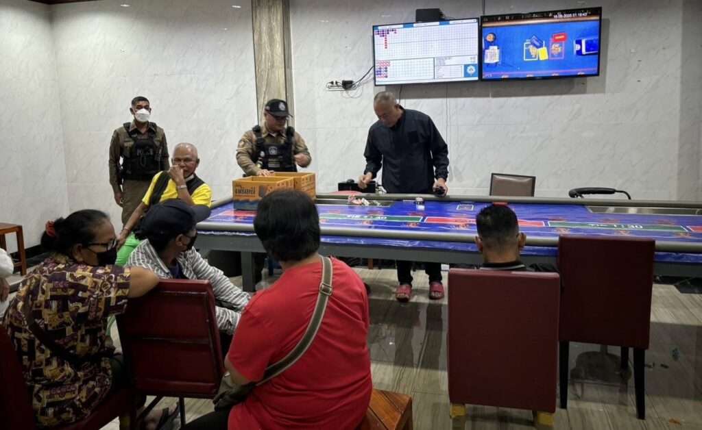 ต่อมาเวลาประมาณ 01:30 น. เจ้าหน้าที่ตำรวจชุดสืบสวนพบว่ามีนักเล่นพนันเดินเข้าไป ผู้ที่ดูแลประตูได้เปิดประตูให้คนเข้าไป เจ้าหน้าที่ตำรวจผู้จับกุมจึงแสดงตัวเข้าพบว่า บริเวณชั้นที่ 2 ของอาคาร มีการตั้งโต๊ะเล่นการพนันเสือ-มังกร พนันเอาทรัพย์สินกันโดยไม่ได้รับอนุญาต จึงเข้าทำการจับกุม แจ้งข้อกล่าวหาและแจ้งสิทธิ์ให้ทราบตามกฎหมาย ควบคุมตัวผู้ต้องหารวม 29 คน พร้อมด้วยของกลาง โต๊ะเล่นการพนันเสือ- มังกร จำนวน 1 โต๊ะ ไพ่ จำนวน 11 สำรับ กล่องบรรจุไพ่ จำนวน 8 อัน,ตัวล้างไพ่ จำนวน 1 อัน ป้ายบอกสัญลักษณ์เสือ- มังกร จำนวน 2 อัน กระดิ่ง 1 อัน เงินของกลาง จำนวน 98,200 บาท นำตัวส่งพนักงานสอบสวนดำเนินคดีตามกฏหมาย
