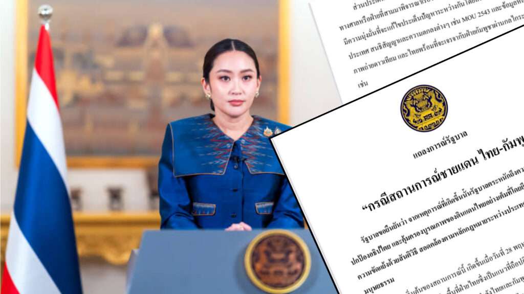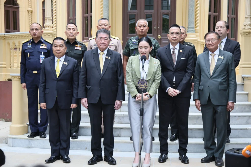 ที่บ้านพิษณุโลก วันที่ 16 มิถุนายน นางสาวแพทองธาร ชินวัตร นายกรัฐมนตรี พร้อมด้วยนายภูมิธรรม เวชยชัย รองนายกรัฐมนตรีและรัฐมนตรีว่าการกระทรวงกลาโหม นายมาริษ เสงี่ยมพงษ์ รัฐมนตรีว่าการกระทรวงการต่างประเทศ พลเอก ณัฐพล นาคพาณิชย์ รัฐมนตรีช่วยว่าการกระทรวงกลาโหม รวมถึงผู้บัญชาการเหล่าทัพ ผู้บัญชาการทหารบก ผู้บัญชาการทหารสูงสุด ร่วมกันแถลงข่าวภายหลังการประชุมสภาความมั่นคงแห่งชาติ ติดตามสถานการณ์ชายแดนไทย–กัมพูชา ย้ำจุดยืนไทยแก้ไขสถานการณ์ชายแดนไทย-กัมพูชา ด้วยสันติวิธีและภายใต้ความร่วมมือทวิภาคี