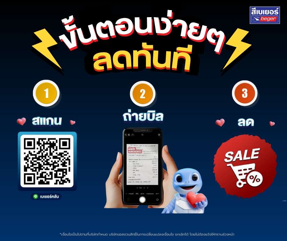 เบเยอร์เปิดกว้างให้เข้าร่วมได้ง่าย ๆ ผ่านออนไลน์ ไม่ว่าจะเป็นร้านใหญ่หรือร้านเล็ก ก็สามารถเข้าถึงโอกาสทางธุรกิจอย่างเท่าเทียม โดย กลุ่มสินค้าที่ร่วมรายการ ได้แก่ สีทาภายนอก–ภายใน สีทาหลังคา สีทาไม้ สีทาเหล็ก และกลุ่มกันซึม โดย วิธีร่วมแคมเปญง่ายแค่ 2 ขั้นตอน 1. Add LINE: @BegerClub 2. ซื้อสินค้า แล้วถ่ายรูปบิล ส่งเข้ามาทาง LINE ก็สามารถรับส่วนลดทันทีต่อถัง โดยไม่มีการจำกัดจำนวน