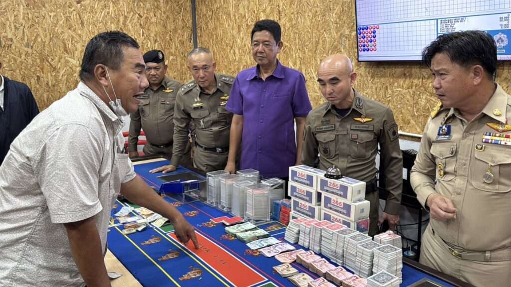เมื่อเวลา 15.30 น. วันที่ 18 มิ.ย.68 นายเกียรติศักดิ์ ตรงศิริ ผู้ว่าราชการจังหวัดนนทบุรี สนธิกำลังเจ้าหน้าที่ฝ่ายปกครองและตำรวจบุกเข้าทลายบ่อนการพนันภายในโกดังดัดแปลงไม่มีเลขที่ บนพื้นที่กว่า 1 ไร่ ภายในซอยแก้วอินทร์ หมู่ 5 ต.เสาธงหิน อ.บางใหญ่ จ.นนทบุรี
