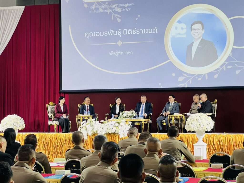 วันที่ 19 มิถุนายน 2568 เวลา 09.00 น. ณ ห้องบุตรน้ำเพชร หอประชุมชัยจินดา ตำรวจภูธรภาค 8จังหวัดภูเก็ต สำนักงานตำรวจแห่งชาติ (ตร.) โดย พล.ต.อ.กิตติ์รัฐ พันธุ์เพ็ชร์ ผู้บัญชาการตำรวจแห่งชาติ มอบหมายให้ พล.ต.อ.นิรันดร เหลื่อมศรี รอง ผบ.ตร. (รับผิดชอบงานด้านกฎหมายและคดี) เป็นประธานในพิธีเปิดการเสวนาทางวิชาการ หัวข้อ “การคุ้มครองสิทธิของประชาชน บนเส้นทางการสืบสวนสอบสวนตาม ป.วิ.อาญา” เพื่อรับฟังความคิดเห็นจากประชาชนและหน่วยงานในกระบวนการยุติธรรมต่อร่าง พ.ร.บ.แก้ไขเพิ่มเติม ป.วิ.อาญา (ร่างของ ส.ส.พรรคประชาชน) ในพื้นที่ภาคใต้ โดยมี พล.ต.ท. อิทธิพล อิทธิสารรณชัย ผู้ช่วย ผบ.ตร. พล.ต.ท.สุรพงษ์ ถนอมจิตร ผบช.ภ.8 พล.ต.ท.อำนวย นิ่มมะโน ก.ร.ตร./อดีต ผบช.ภ.1 พร้อมด้วยผู้บังคับบัญชาระดับ รอง ผบช. และ ผบก. ในสังกัด ภ.8 และ ภ.9 ร่วมงานเสวนา