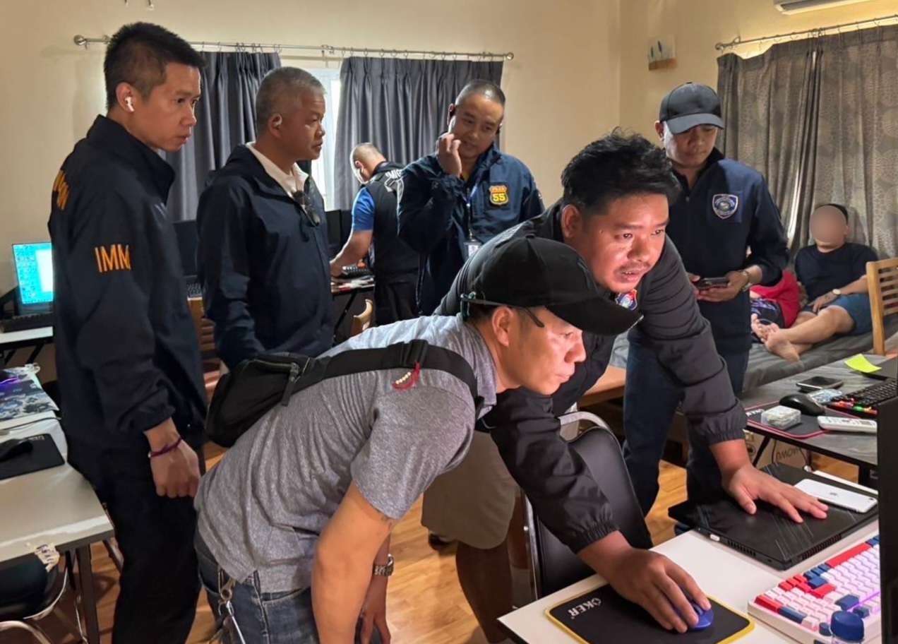 จากการตรวจสอบ พบชายชาวเวียดนาม 7 คน อายุระหว่าง 19 – 46 ปี จึงได้ตรวจสอบเอกสารหนังสือเดินทางพบว่า มีหนังสือเดินทางมาแสดงเพียง 6 คน อีก 1 คน ได้แสดงข้อมูลผ่านโทรศัพท์มือถือ เมื่อตรวจสอบภายในห้องพัก พบของกลาง เครื่องคอมพิวเตอร์, โทรศัพท์มือถือไอโฟน จำนวน 23 เครื่อง และอุปกรณ์อิเล็กทรอนิกส์จำนวนมาก โดยคอมพิวเตอร์มีลักษณะเปิดหน้าจอโปรแกรมไมโครซอฟท์เอกซ์เซล, โปรแกรมไอคลาวด์ และ โปรแกรมที่มีลักษณะการใช้เทคนิคระดับสูง จึงได้ติดต่อประสานเจ้าหน้าที่ตำรวจ กก.1 บก.สอท.2, กก.สส.บก.ตม.3, กก.สส.บช.ทท. มาร่วมตรวจสอบที่เกิดเหตุ
