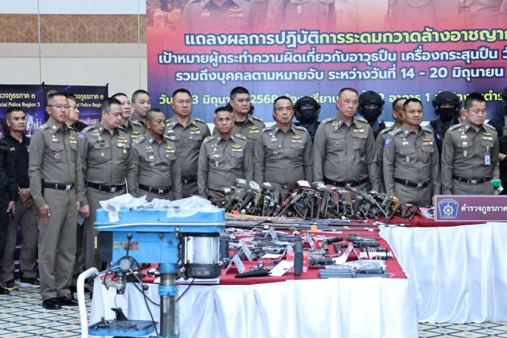 ผบ.ตร.นำทีม แถลงระดมกวาดล้างอาชญากรรมเกี่ยวกับอาวุธปืน เครื่องกระสุนปืน และสืบสวนจับกุมบุคคลตามหมายจับ วันที่ 14 -20 มิถุนายน 2568 ภายใต้แผนยุทธการ “ปิดเมือง สยบโจร โค่นอิทธิพล”
