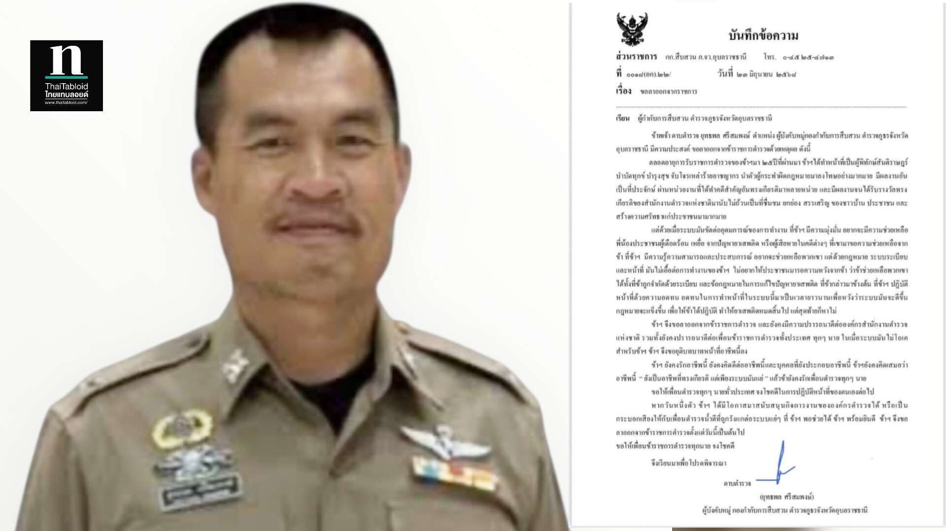 ผู้บังคับหมู่ กองกำกับการสืบสวน ตำรวจภูธรจังหวัดอุบลราชธานี ได้ยื่นหนังสือลาออกจากราชการ โดยในหนังสือลาออกมีใจความระบุว่า