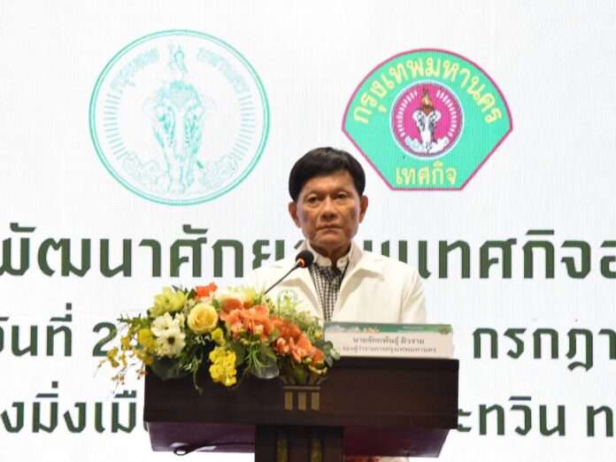 (24 มิ.ย. 68) เวลา 08.30 น. นายจักกพันธุ์ ผิวงาม รองผู้ว่าราชการกรุงเทพมหานคร เป็นประธานในพิธีเปิดโครงการพัฒนาศักยภาพเทศกิจอาสาจราจร โดยมี นายธีรยุทธ ภูมิศักดิ์ ผู้ตรวจราชการกรุงเทพมหานคร พร้อมด้วย คณะผู้บริหาร ข้าราชการ และเจ้าหน้าที่สำนักเทศกิจ และผู้เข้ารับการฝึกอบรม ร่วมพิธี ณ ห้องมิ่งเมือง ชั้น 4 โรงแรมเดอะทวิน ทาวเวอร์ เขตปทุมวัน