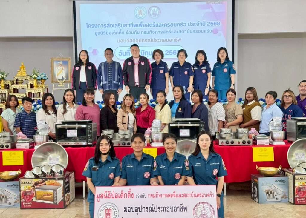 วานนี้ (วันอังคารที่ 24 มิถุนายน พ.ศ. 2568) มูลนิธิป่อเต็กตึ๊ง นำโดย นางศิริกุล โอภาสวงศ์ กรรมการและเลขาธิการ พร้อมด้วย นางจินดา บุญลาภทวีโชค กรรมการตรวจสอบ นางสาวดวงชุตา ติยะพจนพรกุล ผู้ช่วยผู้จัดการฝ่ายสังคมสงเคราะห์ และนางสาวเนาวรัตน์ วรรณศิริ หัวหน้าแผนกหน่วยแพทย์สงเคราะห์ชุมชน นำทีมลงพื้นที่จังหวัดขอนแก่นอีกครั้ง โดยมอบวัสดุอุปกรณ์ประกอบอาชีพ แก่ สตรี บุรุษ พ่อเลี้ยงเดี่ยว หรือผู้ที่มีความหลากหลายทางเพศ ที่มีความรู้และความสามารถ ฐานะยากจน ขาดแคลนวัสดุอุปกรณ์ในการประกอบอาชีพ จำนวน 20 ราย คิดเป็นมูลค่าทั้งสิ้น 397,610 บาท เพื่อให้สามารถประกอบอาชีพเลี้ยงตนเองและครอบครัว ลดปัญหาความเหลื่อมล้ำในสังคม สร้างความสุขสู่ชุมชน สังคม และประเทศชาติอย่างยั่งยืน นอกจากนี้ มูลนิธิฯ ยังจัดหน่วยแพทย์สงเคราะห์ชุมชน นำทีมแพทย์อาสาฯ เจ้าหน้าที่หน่วยแพทย์ ทีมบรรเทาสาธารณภัย (กู้ชีพ) และอาสาสมัครออกหน่วยให้บริการประชาชนในพื้นที่ฟรี ประกอบด้วย บริการตรวจรักษาโรคทั่วไป จ่ายยา ทันตกรรม คัดกรองเบาหวาน กิจกรรมนันทนาการ ตรวจวัดสายตาพร้อมแจกแว่น บริการตัดผม ฯลฯ พร้อมกันนี้ มูลนิธิฯ ยังได้มอบหุ่นจำลองช่วยฟื้นคืนชีพผู้ใหญ่และเครื่องช่วยสาธิตกระตุกไฟฟ้าหัวใจ จำนวน 2 ชุด (4 ชิ้น) ในโครงการ “สนับสนุนเครื่องมือทางการแพทย์” ให้แก่ศูนย์เรียนรู้การพัฒนาสตรีและครอบครัวรัตนาภา เพื่อใช้ในหลักสูตรฝึกอบรมทักษะอาชีพดูแลผู้สูงอายุ รวมทั้ง มอบรถเข็นวีลแชร์แก่ผู้พิการ จำนวน 10 ราย และมอบรถจักรยานแก่โรงเรียนชนบทที่ขาดแคลน จำนวน 2 โรงเรียน รวม 20 คัน เพื่อให้นักเรียนที่ประสบปัญหาในการเดินทางได้ยืมเรียน รวมถึงเป็นการแบ่งเบาภาระค่าพาหนะแก่ผู้ปกครองได้อีกทางหนึ่ง อีกทั้งยังเสริมสร้างให้นักเรียนได้ออกกำลังกาย เรียนรู้กฎจราจร เรียนรู้การแบ่งปัน และดูแลรักษาสาธารณสมบัติร่วมกัน รวมมูลค่าการดำเนินการช่วยเหลือชาวขอนแก่นในครั้งนี้ทั้งสิ้น 596,362 บาท (ห้าแสนเก้าหมื่นหกพันสามร้อยหกสิบสองบาทถ้วน) โดยมี ผศ.ดร.พนธ์พันธ์ เลิศจันทรางกูร ที่ปรึกษาอธิบดีกรมกิจการสตรีและสถาบันครอบครัว พร้อมด้วย นายสงวน สุธรรม ผู้อำนวยการสำนักงานส่งเสริมและสนับสนุนวิชาการ 5 นางสาวศุภวรรณ ขูดแก้ว ผู้อำนวยการกองคุ้มครองและพัฒนาอาชีพ และอาสาสมัครเฉพาะกิจมูลนิธิป่อเต็กตึ๊ง ร่วมในพิธี ณ ศูนย์เรียนรู้การพัฒนาสตรีและครอบครัวรัตนาภา จังหวัดขอนแก่น