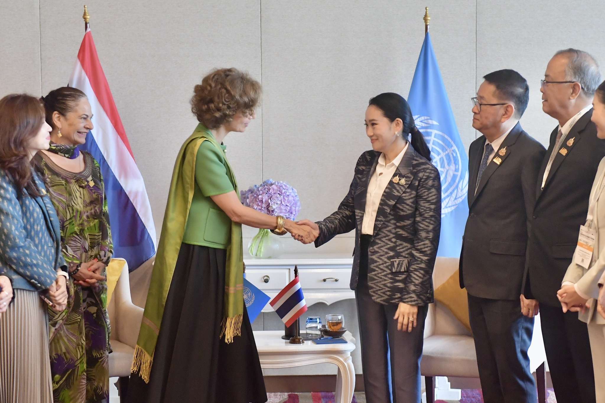 ขณะเดียวกัน น.ส.โอเดรย์ กล่าวชื่มชมการผลักดันนโยบายซอฟต์พาวเวอร์ของไทย ผ่านวัฒนธรรมที่จับต้องไม่ได้ เช่น งานฝีมือ ศิลปะ และอาหาร โดยนายกรัฐมนตรีกล่าวถึงการยกระดับ Soft Power ที่ครอบคลุมไปสู่ด้านการศึกษา กีฬา ภาพยนตร์และการผลิตสื่อสร้างสรรค์ เพื่อใช้มรดกทางวัฒนธรรมและทักษะช่างฝีมือเป็นจุดแข็ง ขับเคลื่อนสู่เศรษฐกิจ ซึ่งทางยูเนสโกสนใจร่วมมือกับรัฐบาลไทย ผ่านสำนักงานของยูเนสโกในกรุงเทพฯ พร้อมเรียนเชิญนายกรัฐมนตรีเยือนสำนักงานใหญ่ยูเนสโก ณ กรุงปารีส อีกด้วย