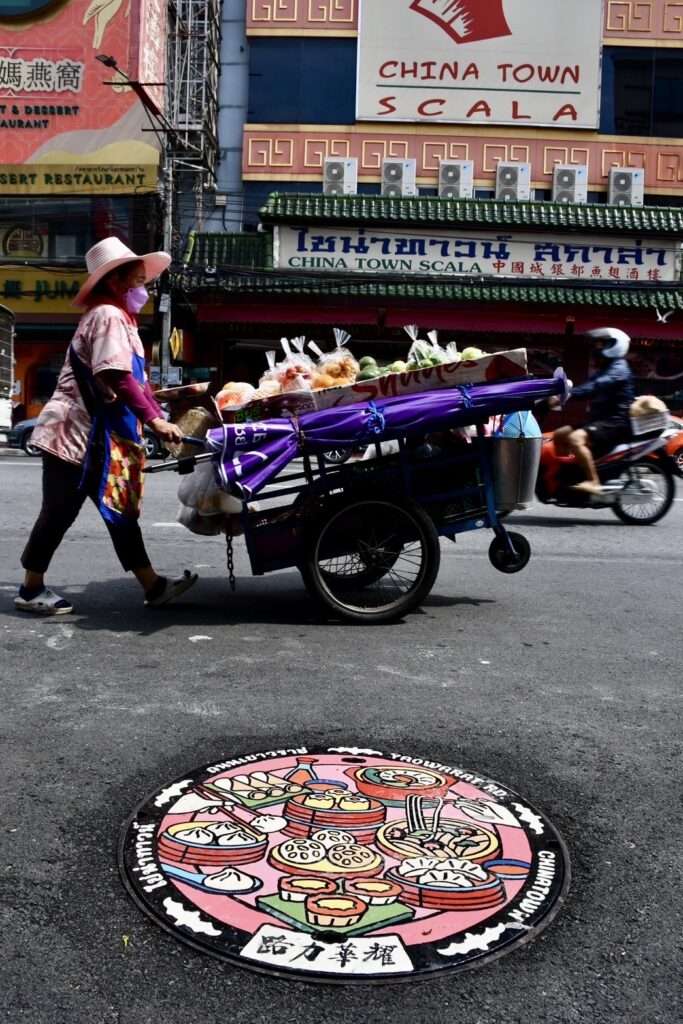 โดย “ฝาท่ออัตลักษณ์ถนนเยาวราช” เป็นส่วนหนึ่งของการปรับปรุงพื้นผิวถนนและทางเท้าเยาวราช โดย สำนักการโยธา กรุงเทพมหานคร ออกแบบโดยศิลปินอิสระ 8 ท่าน ได้แก่ คุณจุฤทธิ์ กังวานภูมิ คุณดุสิตา วระพงษ์สิทธิกุล คุณรัชดาภรณ์ เหมจินดา คุณธนากร ดีอ่วม คุณณัฐพร เวสารัชตระกูล คุณภัทรายุ วัฒนพานิช คุณวรภัค ทัศมากร และ คุณแทนใท พรจันทร์ทอง