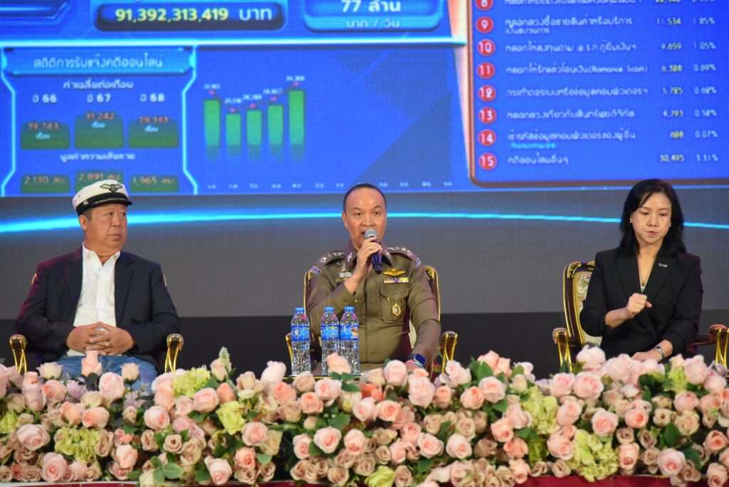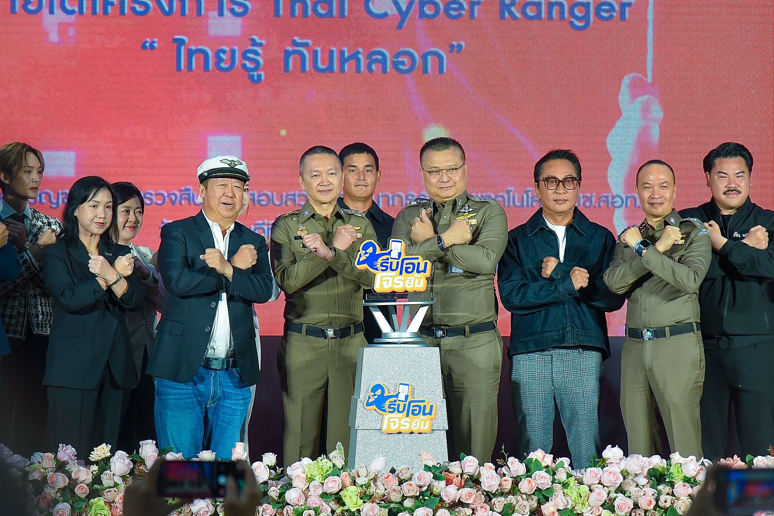 วันนี้ (26 มิถุนายน 2568) เวลา 10.00 น. พล.ต.อ.ธัชชัย ปิตะนีละบุตร จเรตำรวจแห่งชาติ ในฐานะผู้อำนวยการศูนย์ป้องกันปราบปรามอาชญากรรมทางเทคโนโลยีสารสนเทศ สำนักงานตำรวจแห่งชาติ เป็นประธานเปิดโครงการ “Thai Cyber Ranger” แคมเปญ “รีบโอนโจรยิ้ม” ชวนคนไทย “Strike Back” โต้กลับภัยแก๊งคอลเซ็นเตอร์ โดยมี พล.ต.อ.กรไชย คล้ายคลึง รองผู้บัญชาการตำรวจแห่งชาติ , พล.ต.ท.ไตรรงค์ ผิวพรรณ ผู้บัญชาการตำรวจสืบสวนสอบสวนอาชญากรรมทางเทคโนโลยี (ผบช.สอท.) , พล.ต.ต.อรรถสิทธิ์ สุดสงวน รอง ผบช.สอท., พล.ต.ต.วิวัฒน์ คำชำนาญ รอง ผบช.สอท., พล.ต.ต.ทินกร รังมาตร์ รอง ผบช.สอท., พล.ต.ต.ศิริวัฒน์ ดีพอ ผบก.สอท.1 พล.ต.ต.ศิลา กาญจน์รักษ์ ผบก.ตอท. และ พล.ต.ต.สุรพงษ์ ไทยประเสริฐ ผบก.อก.บช.สอท. ร่วมกับ คุณตัน ภาสกรนที กรรมการผู้อำนวยการ บมจ.อิชิตัน กรุ๊ป, รศ.พ.ต.ท.ดร.กฤษณพงค์ พูตระกูล รองอธิการบดี /ประธานกรรมการคณะอาชญาวิทยาและการบริหารงานยุติธรรม มหาวิทยาลัยรังสิต, คุณสถาพร คิ้วสุวรรณสุข ประธานเจ้าหน้าที่ฝ่ายเทคโนโลยี บริษัท ทรูมันนี่ จำกัด และ คุณสุกัณณี เลิศสุขวิบูลย์ หัวหน้าสายงานธุรกิจต่างประเทศและบริการดิจิทัล บมจ.ทรู คอร์ปอเรชั่น , อินฟลูเอนเซอร์ และเจ้าหน้าที่ที่เกี่ยวข้อง ร่วมแถลงข่าว ณ ห้องศรียานนท์ อาคาร 1 สำนักงานตำรวจแห่งชาติ