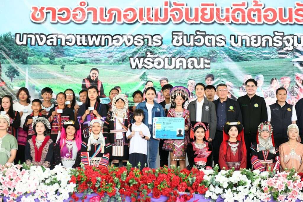 โดย น.ส.แพทองธาร ระบุว่า รัฐบาลได้ดำเนินนโยบายเพื่อแก้ปัญหาสถานะบุคคลและบุคคลไร้รัฐมาอย่างต่อเนื่อง โดยมีการลดขั้นตอน ลดระยะเวลาการพิจารณาเหลือเพียง 5 วัน จากเดิม 270 วัน ซึ่งขณะนี้ได้ผ่านความเห็นชอบจากครม.แล้ว และจะมีผลบังคับใช้ในวันที่ 30 มิถุนายนนี้ ทั้งนี้ นายกฯ ได้แสดงความยินดีกับพี่น้องกลุ่มชาติพันธุ์ทุกคน ที่มีสิทธิยื่นขอรับรองสถานะเพื่อให้ได้รับบัตรประจำตัวประชาชน และได้รับสิทธิในฐานะคนไทยอย่างเสมอภาค ก่อนจะร่วมถ่ายภาพกับประชาชนในพื้นที่ ท่ามกลางบรรยากาศเป็นกันเอง
