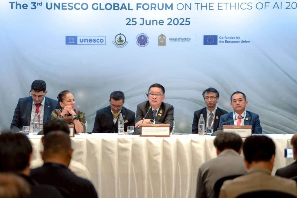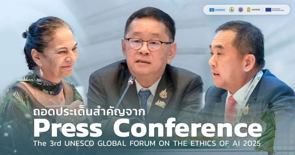 กรุงเทพฯ วันที่ 29 มิถุนายน – นายประเสริฐ จันทรรวงทอง รัฐมนตรีว่าการกระทรวงดิจิทัลเพื่อเศรษฐกิจและสังคม (ดีอี) กล่าวถึงประโยชน์ที่ประเทศไทยจะได้รับจากการเป็นเจ้าภาพประชุมระดับโลกด้านจริยธรรม AI  ‘The 3rd UNESCO Global Forum on the Ethics of AI 2025’ ว่า ช่วงการประชุมที่ได้รับความสนใจจากทุกฝ่ายในการประชุมครั้งนี้และยังคง คือช่วงการแถลงข่าวร่วมกันของแกนนำรัฐบาลไทยและตัวแทนยูเนสโก้ (UNESCO)  ซึ่งตนพร้อม นายวิศิษฏ์ วิศิษฏ์สรอรรถ ปลัดกระทรวงดีอี และ Ms.Lidia Brito Assistant Director-General for Social and Human Sciences, UNESCO ตัวแทนของยูเนสโกได้สื่อสารจุดหมายและเป้าประสงค์ในการจัดงานนี้ขึ้นร่วมกัน