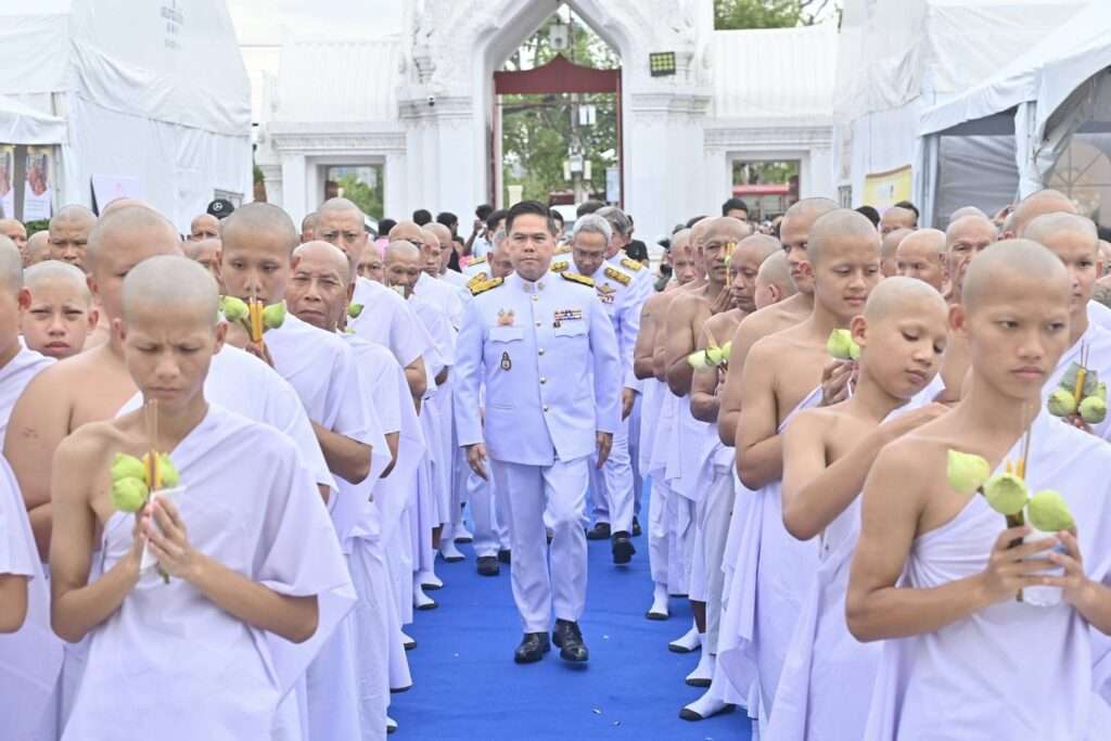 วัดเบญจมบพิตรดุสิตวนาราม วันที่ 29 มิ.ย. – โดยพระบาทสมเด็จพระเจ้าอยู่หัว พระราชทานผ้าไตรถวายพระอุปัชฌาย์ 1 ไตร และพระราชทานพระบรมราชานุญาตให้คณะกรรมการวัดเบญจมบพิตรดุสิตวนาราม จัดผ้าไตรพระราชทาน 196 ไตร ถวายโดยเสด็จพระราชกุศล ในพิธีบรรพชาอุปสมบทราษฎรบนพื้นที่สูง ประจำปี 2568 เพื่อถวายพระราชกุศล เนื่องในโอกาสวันเฉลิมพระชนมพรรษา พระบาทสมเด็จพระเจ้าอยู่หัว 28 กรกฎาคม 2568 โดยมีนายวราวุธ ศิลปอาชา รัฐมนตรีว่าการกระทรวงการพัฒนาสังคมและความมั่นคงของมนุษย์ (รมว.พม.) เป็นประธานฝ่ายฆราวาส พระธรรมวชิราธิบดี เจ้าอาวาสวัดเบญจมบพิตรดุสิตวนาราม เป็นประธานฝ่ายสงฆ์ มีนายอนุกูล ปีดแก้ว ปลัด พม. นายกันตพงศ์ รังษีสว่าง อธิบดีกรมพัฒนาสังคมและสวัสดิการ และคณะผู้บริหาร ข้าราชการ และเจ้าหน้าที่กระทรวง พม. ผู้บริหารบริษัท เคาน์เตอร์เซอร์วิส จำกัด ผู้บริหารบริษัท ซีพีแรม จำกัด ครอบครัวและญาติของผู้บรรพชาอุปสมบท และประชาชนผู้มีจิตศรัทธา เข้าร่วมพิธี