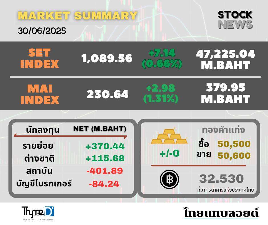 สรุปภาวะการลงทุนในตลาดหลักทรัพย์ ประจำวันที่ 30 มิถุนายน 2568
