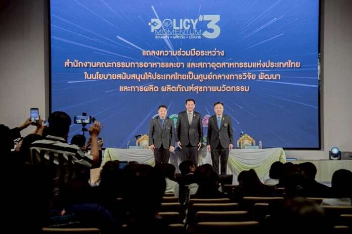 ปัจจุบัน อย. ขับเคลื่อนความร่วมมือใน 3 ด้านหลัก คือ 1. สนับสนุนการวิจัยและนวัตกรรม ด้วยการจัดตั้ง One Stop Service และยกระดับผู้ประกอบการให้พร้อมขึ้นทะเบียน 2. เพิ่มขีดความสามารถการแข่งขัน โดยส่งเสริมการใช้สถานที่ผลิตร่วมสำหรับผู้ประกอบการรายย่อย และ 3.สร้างความเชื่อมั่น ผ่านกลไกรับฟังข้อเสนอแนะและพัฒนาอย่างต่อเนื่อง