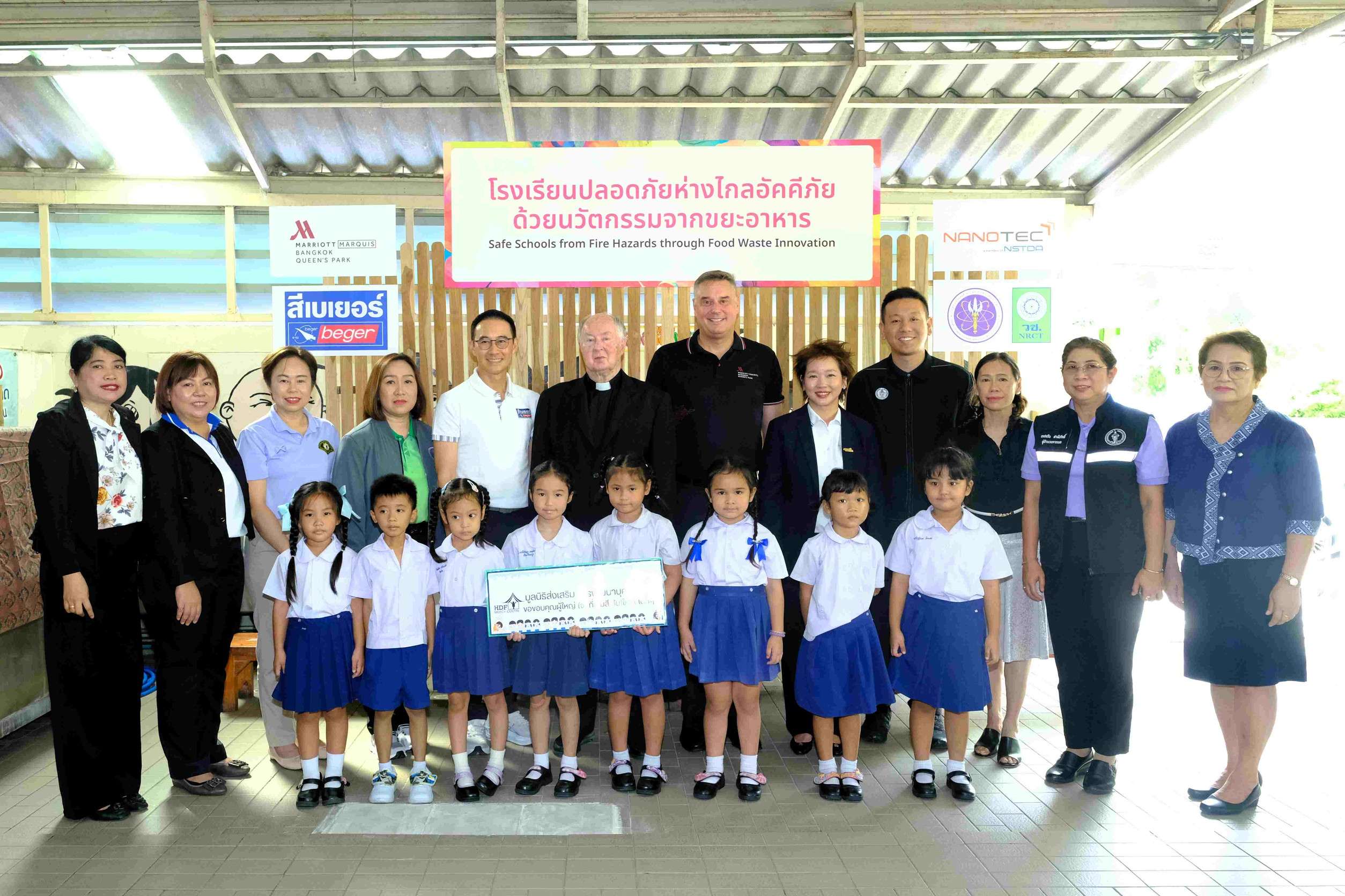 กรุงเทพฯ – บริษัท เบเยอร์ จำกัด ผู้นำด้านนวัตกรรมสีรักษ์โลก เดินหน้ายกระดับมาตรฐานอาคารปลอดภัยและเป็นมิตรต่อสิ่งแวดล้อม เปิดตัวโครงการ “โรงเรียนปลอดภัย ห่างไกลอัคคีภัยด้วยนวัตกรรมจากขยะอาหาร” ณ ศูนย์เด็กปฐมวัยเมอร์ซี่ คลองเตย โดยร่วมกับพันธมิตรภาครัฐและเอกชน ได้แก่ ศูนย์นาโนเทค สวทช., กรุงเทพมหานคร และ โรงแรมแบงค็อก แมริออท มาร์คีส์ ควีนส์ปาร์ค นำขยะอาหาร (Food waste) จากเปลือกหอยนางรม มาผลิตเป็น “สารชีวภาพหน่วงไฟ” ที่ช่วยเพิ่มประสิทธิภาพในการป้องกันอัคคีภัย กับ ผลิตภัณฑ์ BegerCool All-Plus for Interior สีทาภายในที่มีคุณสมบัติโดดเด่น ทั้งการสะท้อนความร้อน และคุณสมบัติหน่วงไฟ เพื่อลดความเสี่ยงอัคคีภัยในแหล่งชุมชน โดยเฉพาะพื้นที่ที่มีเด็กเล็กซึ่งมีข้อจำกัดในการอพยพย้ายในภาวะฉุกเฉิน พร้อมยังมีสุขภาวการณ์อยู่อาศัยที่ดีด้วยอุณหภูมิที่เย็นสบาย