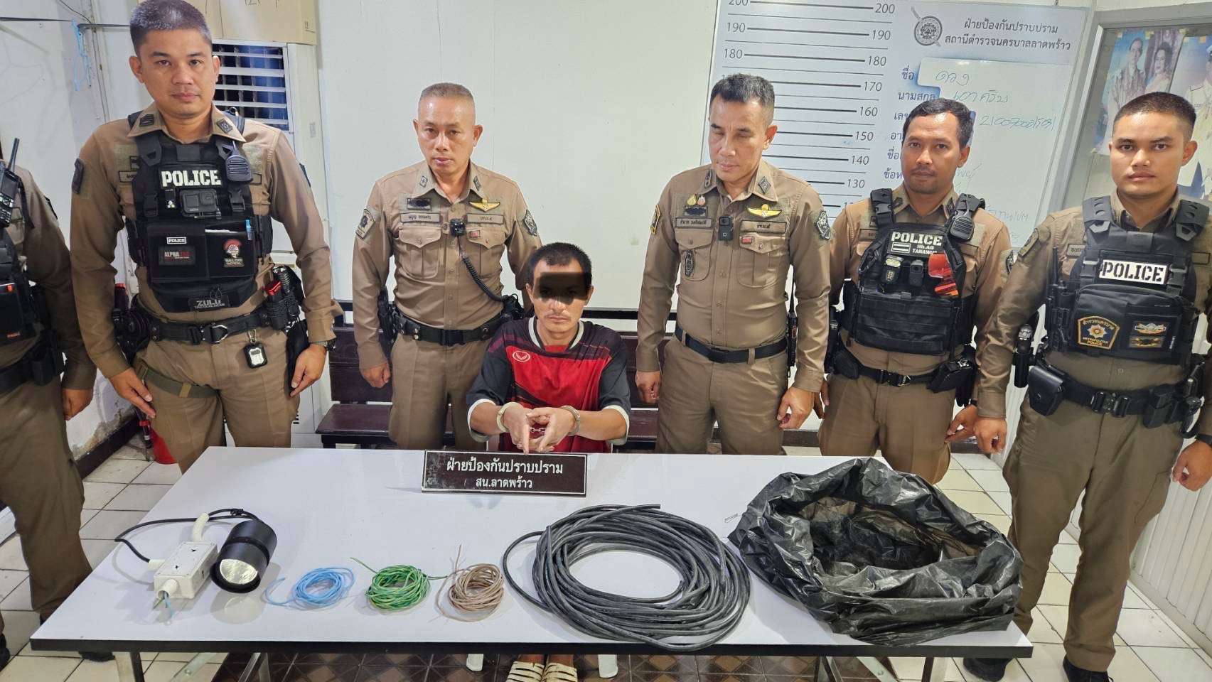 โดนรวบอีก 1 ราย ลักลอบตัดสายไฟ บน Skywalk แยกบางกะปิ