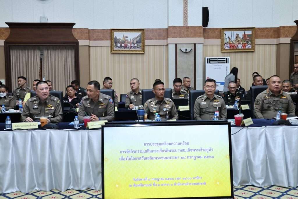 วันนี้ (8 กรกฎาคม 2568) เวลา 14.00 น. พล.ต.อ.ไกรบุญ ทรวดทรง รองผู้บัญชาการตำรวจแห่งชาติ ในฐานะประธานกองอำนวยการร่วมการจัดกิจกรรมเฉลิมพระเกียรติพระบาทสมเด็จพระเจ้าอยู่หัว เนื่องในโอกาสวันเฉลิมพระชนมพรรษา 28 กรกฎาคม 2568 เป็นประธานการประชุมเตรียมความพร้อมการจัดกิจกรรมเฉลิมพระเกียรติพระบาทสมเด็จพระเจ้าอยู่หัว เนื่องในโอกาสวันเฉลิมพระชนมพรรษา 28 กรกฎาคม 2568 โดยมี พล.ต.ท.อิทธิพล อิทธิสารรณชัย ผู้ช่วยผู้บัญชาการตำรวจแห่งชาติ , พล.ต.ท.สยาม บุญสม ผู้บัญชาการตำรวจนครบาล พร้อมด้วยผู้แทนจากหน่วยงานต่างๆ ในสังกัดกองบัญชาการตำรวจนครบาล , กองบัญชาการตำรวจสอบสวนกลาง , กองบัญชาการตำรวจสันติบาล , กองบัญชาการตำรวจท่องเที่ยว , สำนักงานตรวจคนเข้าเมือง , สำนักงบประมาณและการเงิน , สำนักงานเลขานุการตำรวจ , สำนักงานยุทธศาสตร์ตำรวจ และหน่วยงานที่เกี่ยวข้อง อาทิ สำนักงานปลัดสำนักนายกรัฐมนตรี , กระทรวงมหาดไทย , กระทรวงคมนาคม , กระทรวงการพัฒนาสังคมและความมั่นคงของมนุษย์ , กระทรวงสาธารณสุข , กระทรวงศึกษาธิการ , กรุงเทพมหานคร และหน่วยงานส่วนราชการที่เกี่ยวข้อง ร่วมประชุม ณ ห้องศรียานนท์ ชั้น 2 อาคาร 1 สำนักงานตำรวจแห่งชาติ