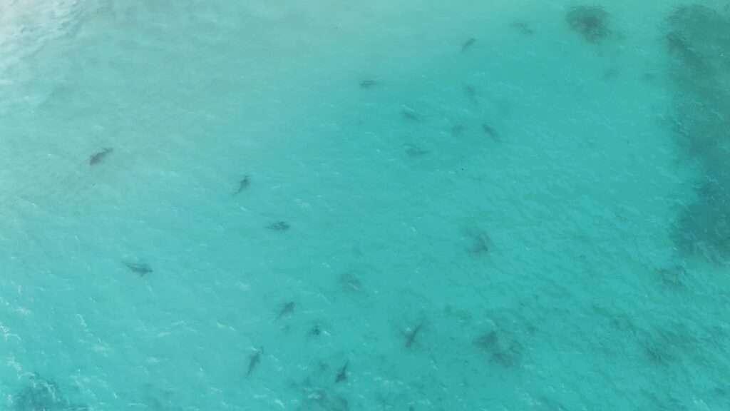 ทีมวิจัยใช้เทคโนโลยีทันสมัย 2 แบบ ด้วยการถ่ายภาพทางอากาศ ด้วยอากาศยานไร้คนขับ (โดรน) เพื่อนับประชากรฉลาม และกล้องถ่ายใต้น้ำ BRUVs (Baited Remote Underwater Video) เพื่อสังเกตพฤติกรรมฉลาม จุดสูงสุดของการสำรวจเกิดขึ้นในตอนเช้าของวันที่ 3 กรกฎาคม 2568 เมื่อทีมวิจัยพบฝูงฉลามครีบดำจำนวน 158 ตัวพร้อมกัน ตัวเลขนี้ถือว่าเป็นสถิติสูงสุดในการสำรวจครั้งนี้