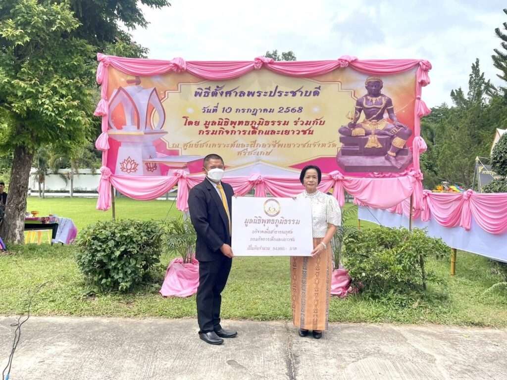10 ก.ค.68 ณ ศูนย์สงเคราะห์และฝึกอาชีพเยาวชนจังหวัดศรีสะเกษ , มูลนิธิพุทธภูมิธรรม ร่วมกับ กรมกิจการเด็กและเยาวชน กระทรวงการพัฒนาสังคมและความมั่นคงของมนุษย์ นำโดย นางอภิญญา ชมภูมาศ อธิบดีกรมกิจการเด็กและเยาวชน เป็นประธานในพิธี 1.งานจัดตั้งสิ่งศักดิ์สิทธิ์ประจำหน่วยงาน “พระประชาบดี” ที่ชำรุด หักโค่นไป เนื่องจากเหตุการณ์วาตภัย เพื่อเป็นสิริมงคลและศูนย์รวมใจในการทำดีของ เด็ก เยาวชน เจ้าหน้าที่ในหน่วยงาน ประชาชน