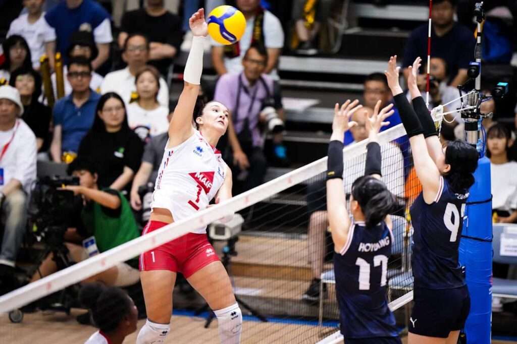 วันอาทิตย์ที่ 13 กรกฎาคม 2568 เวลา 09.00น.ตามเวลาในประเทศไทย ฝรั่งเศสโชว์ฟอร์มเฉียบ เอาชนะเกาหลีใต้ 3 เซ็ตรวด 25-17, 25-19, 25-21 ในการแข่งขันวอลเลย์บอลหญิง เนชั่นส์ลีก 2025 (VNL2025) รอบแรก กลุ่ม 9 นัดสุดท้าย ที่เมืองชิบะ ประเทศญี่ปุ่น