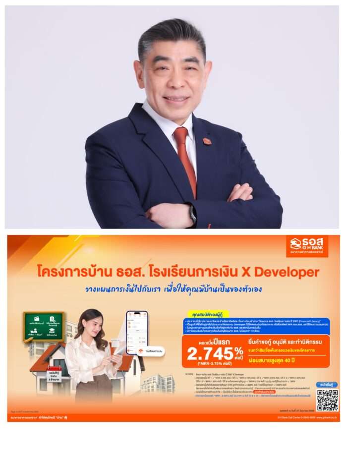 นายกมลภพ วีระพละ กรรมการผู้จัดการ ธนาคารอาคารสงเคราะห์ (ธอส.)เปิดเผยว่า เมื่อปี 2567 ธอส. ได้จัดทำโครงการบ้าน ธอส. โรงเรียนการเงิน เพื่อสนับสนุนให้ผู้ที่ไม่มีเอกสารหลักฐานรายได้หรือที่มาของรายได้ไม่เพียงพอต่อการยื่นขอสินเชื่อที่อยู่อาศัย โดยออมเงินหรือเดินรายการทางการเงิน (Statement) จากการประกอบธุรกิจอย่างสม่ำเสมอผ่าน Application : GHB ALL GEN เป็นระยะเวลาไม่น้อยกว่า 12 เดือน (ทุกบัญชีรวมกัน) เพื่อนำหลักฐานการออมหรือรายการทางการเงิน (Statement) ดังกล่าวมาใช้สำหรับยื่นขอสินเชื่อกับ ธอส. โดยที่ผ่านมา มีผู้สนใจลงทะเบียนเพื่อเปิดบัญชีเงินออมกว่า 220,000 ราย และมีลูกค้าได้รับสินเชื่อจาก ธอส. มากกว่า50,000 ราย ดังนั้น เพื่อขับเคลื่อนบทบาทการเป็นผู้นำด้านสินเชื่อที่อยู่อาศัยอย่างต่อเนื่อง และดำเนินการตามพันธกิจ “ทำให้คนไทยมีบ้าน” ธอส. จึงขยายความร่วมมือกับผู้ประกอบการอสังหาริมทรัพย์เดินหน้าจัดทำ “โครงการบ้าน ธอส. โรงเรียนการเงิน X Developer” เพื่อสนับสนุนให้ลูกค้าที่ต้องการซื้อที่อยู่อาศัยในโครงการจัดสรรที่ธนาคารรับขึ้นทะเบียนเป็นโครงการ LTF / FASTTRACK / SMART FAST TRACK / REGIONAL FAST TRACK / BZPร่วมออมเงินหรือเดินรายการทางการเงิน (Statement) จากการประกอบธุรกิจผ่าน Application : GHB ALL GEN เพื่อสร้างวินัยทางการเงินอย่างเป็นระบบ เพิ่มความสามารถในการยื่นขอสินเชื่อกับ ธอส. และสร้างโอกาสในการมีบ้านเป็นของตนเองได้ในอนาคต โดย ธอส. ได้จัดเตรียมสินเชื่อไว้รองรับ