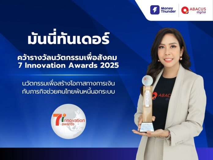 บริษัท อบาคัส ดิจิทัล จำกัด ผู้พัฒนาแอปพลิเคชันสินเชื่อออนไลน์ “มันนี่ทันเดอร์” (MoneyThunder) ได้รับรางวัลนวัตกรรมเพื่อสังคม (Social Contribution) จากเวที 7 Innovation Awards 2025 ตอกย้ำบทบาทของบริษัทในฐานะผู้นำด้านฟินเทคของไทย ที่นำเทคโนโลยีมาขับเคลื่อนโอกาสทางการเงินให้กับคนไทยแล้วว่า 2.4 หมื่นล้าน โดยเฉพาะกลุ่มที่ยังเข้าไม่ถึงแหล่งทุนในระบบ เพื่อให้สามารถหลุดพ้นจากการพึ่งพาหนี้นอกระบบ และเข้าถึงสินเชื่อที่ปลอดภัย โปร่งใส และเป็นธรรม