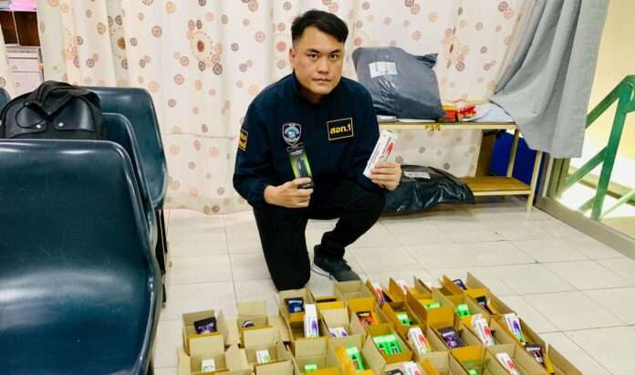 – ตามสืบเพจลอบขายบุหรี่ไฟฟ้า ยึดพัสดุตีกลับปริศนาคาคอนโดหรูเพียบ เปิดกล่องผงะ เจอของกลางอื้อ มูลค่ากว่า 30,000 บาท