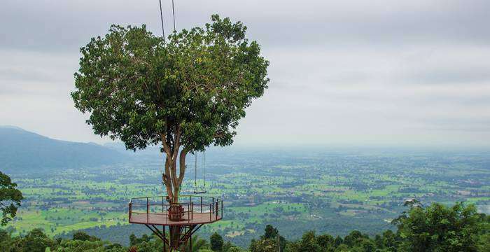 นอกจากนี้ “เนินมะปราง” ยังมีต้นไม้รูปหัวใจ ที่ตั้งตระหง่านอยู่บริเวณบ้านสวนชมวิวรีสอร์ทซึ่งเป็นพื้นที่เนินเขาสูงของขุนเขารักไทย ตำบลชมพู ณ ที่แห่งนี้เราสามารถเห็นวิวทิวทัศน์ถึง 5 จังหวัดด้วยกัน ทั้งนครสวรรค์ ลพบุรี พิจิตร เพชรบูรณ์ และพิษณุโลก โดยไม่เสียค่าใช้จ่ายในการเข้าชม แต่หากต้องการนั่งชิงช้าเพื่อชมวิวแบบสุดสายตา 360 องศา เจ้าของสวนก็คิดราคาเพียงหลักสิบเท่านั้นค่ะ เมื่อเทียบกับการได้ชมวิวหลักล้านก็ถือว่าราคาเกินคุ้มจริง ๆ ค่ะ หากใครขยันตื่นเช้าอาจได้เห็นทะเลหมอกที่ทอดยาวสุดสายตาอีกด้วย ส่วนที่พักบริเวณบ้านรักไทย และบ้านเผ่าไทย ก็มีให้เลือกตามใจชอบทั้งแบบกางเต็นท์และบ้านพัก