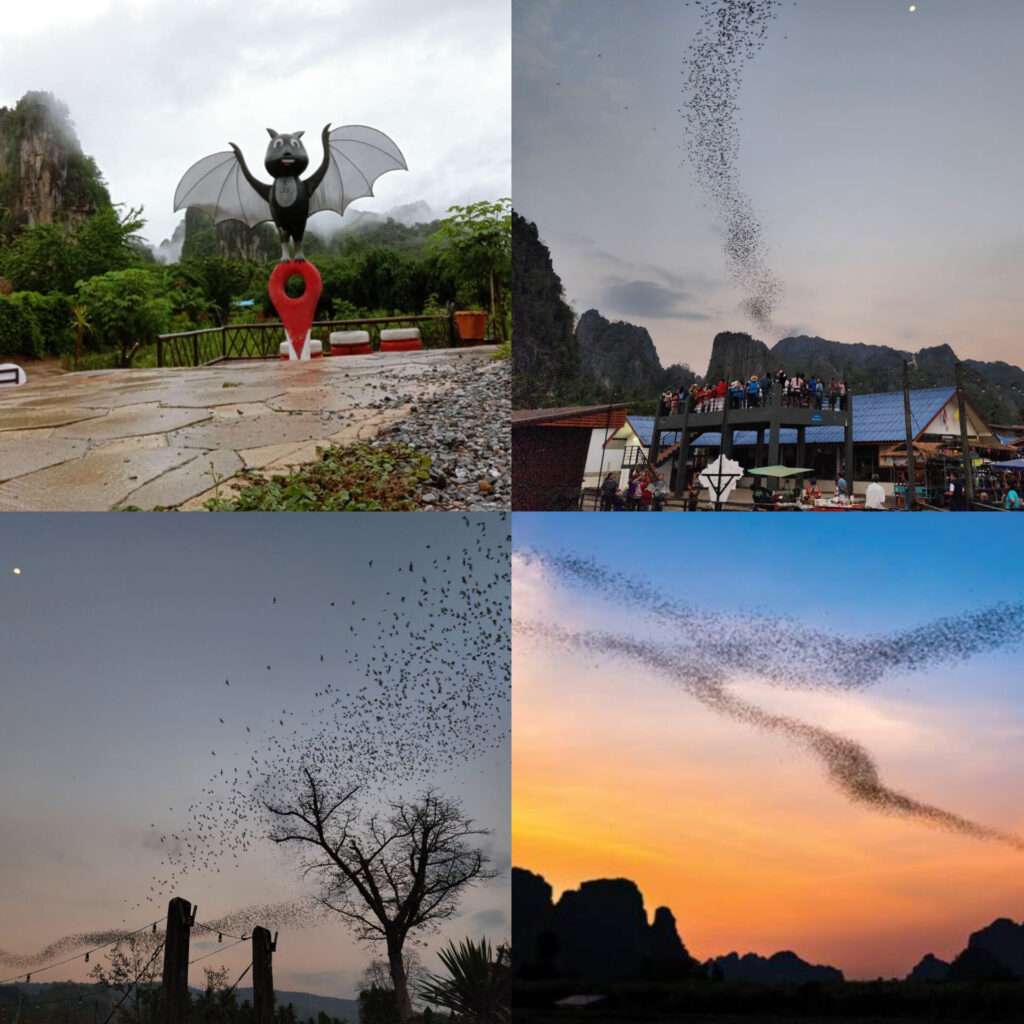 ที่บ้านมุงเหนือจะมีกลุ่มค้างคาวหลายพันตัว บินออกจากถ้ำ เรียงรายเป็นสายสีดำเพื่อมาหากินในยามค่ำคืน จึงไม่แปลกเลยที่เราจะเห็นว่าบริเวณบ้านมุงเหนือ จะคราคร่ำไปด้วยนักท่องเที่ยวที่มารอชมภาพประทับใจสุด UNSEEN นี้ โดยเฉพาะหากครอบครัวไหนที่มีลูกหลานมาด้วยจะเห็นว่าเด็ก ๆ ต่างตื่นเต้นกับ BATMAN ตัวเป็น ๆ ที่บินมาให้เห็นกันต่อหน้าต่อตาเลยค่ะ