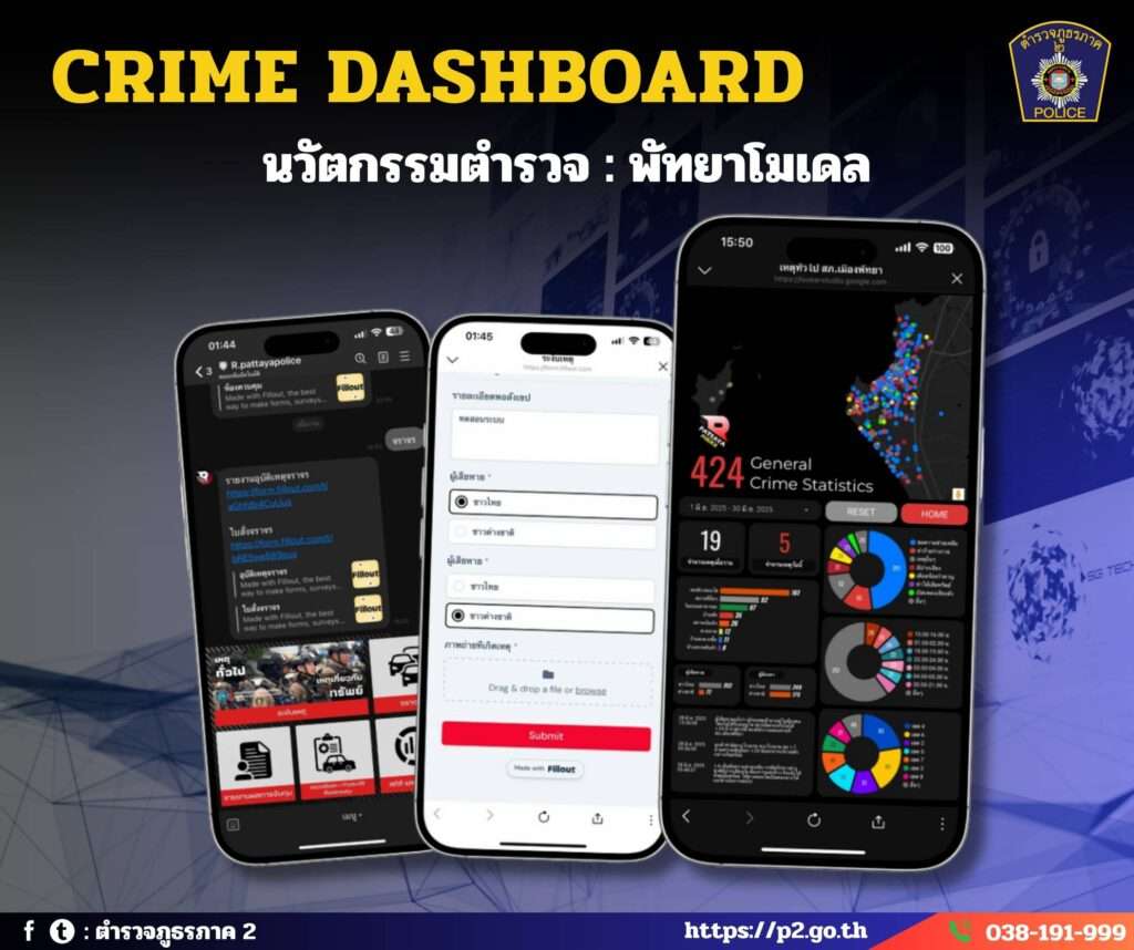 นอกจากนี้ ยังมีนวัตกรรม CRIME DASHBOARD รายงานเหตุ บันทึกเหตุอาชญากรรม ติดตามสถิติอาชญากรรมครบในระบบเดียวช่วยให้เจ้าหน้าที่ตำรวจทำงานได้ง่าย ลดภาระงาน ลดความผิดพลาด และที่สำคัญมีข้อมูลพร้อมใช้ทันที โดยหลังจากติดตั้งระบบนี้สถิติอาชญากรรมในเมืองพัทยาลดลงอย่างเห็นได้ชัด ยกตัวอย่าง เหตุทำร้ายร่างกายในเดือนมิถุนายน มี 50 ราย ลดลงจากเดือนเมษายน ที่มี 111 ราย เหตุเกี่ยวกับทรัพย์ก็ลดลงเช่นกัน เดือนเมษายน 81 ราย เดือนมิถุนายนเหลือ 48 ราย ผลมาจากตำรวจปฏิบัติหน้าที่ได้แม่นยำขึ้น ตรวจจุดเสี่ยงลดการเกิดเหตุ รวดเร็ว เห็นผลจริง