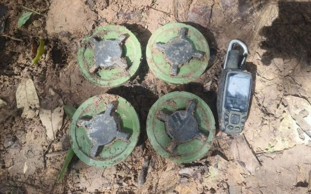 ผู้สื่อข่าวรายงานอีกว่า จากการตรวจสอบเบื้องต้น หน่วยทหารช่างจากกองพันทหารช่างที 6(ช.พัน.6) สังกัดกองกำลังสุรนารี หน่วยเก็บกู้พบการวาง ทุ่นระเบิดหลายสนาม รวมแล้วนับร้อยลูก โดยบางจุดพบลักษณะการวางแบบสกัดกั้นเส้นทางเคลื่อนพล และบางส่วนเป็นลักษณะคลัสเตอร์บอมบ์ (Cluster Bomb) ซึ่งจัดเป็นอาวุธร้ายแรง มีอานุภาพทำลายสูง และสามารถปลิดชีพและทำลายล้างได้เป็นวงกว้างซึ่งในบริเวณที่พบทุ่นระเบิดอยู่ด้านหลังแนวต้นพญาสัตตบรรณ ซึ่งเป็นจุดยุทธศาสตร์สำคัญ หน่วยปฏิบัติการจึงต้องดำเนินงานด้วยความระมัดระวังขั้นสูงสุด เพื่อป้องกันความสูญเสียทั้งต่อชีวิตและทรัพย์สิน