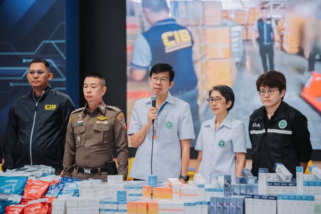 ประกอบกับ ได้รับเรื่องร้องเรียนจากประชาชน ให้ทำการตรวจสอบร้านค้าที่จำหน่ายกลุ่มผลิตภัณฑ์ดังกล่าวผ่านแพลตฟอร์มออนไลน์ โดยไม่แสดงฉลากภาษาไทย จึงทำการสืบสวนจนทราบถึงสถานที่จัดเก็บผลิตภัณฑ์ผิดกฎหมาย ในพื้นที่ เขตลาดกระบัง กรุงเทพมหานคร