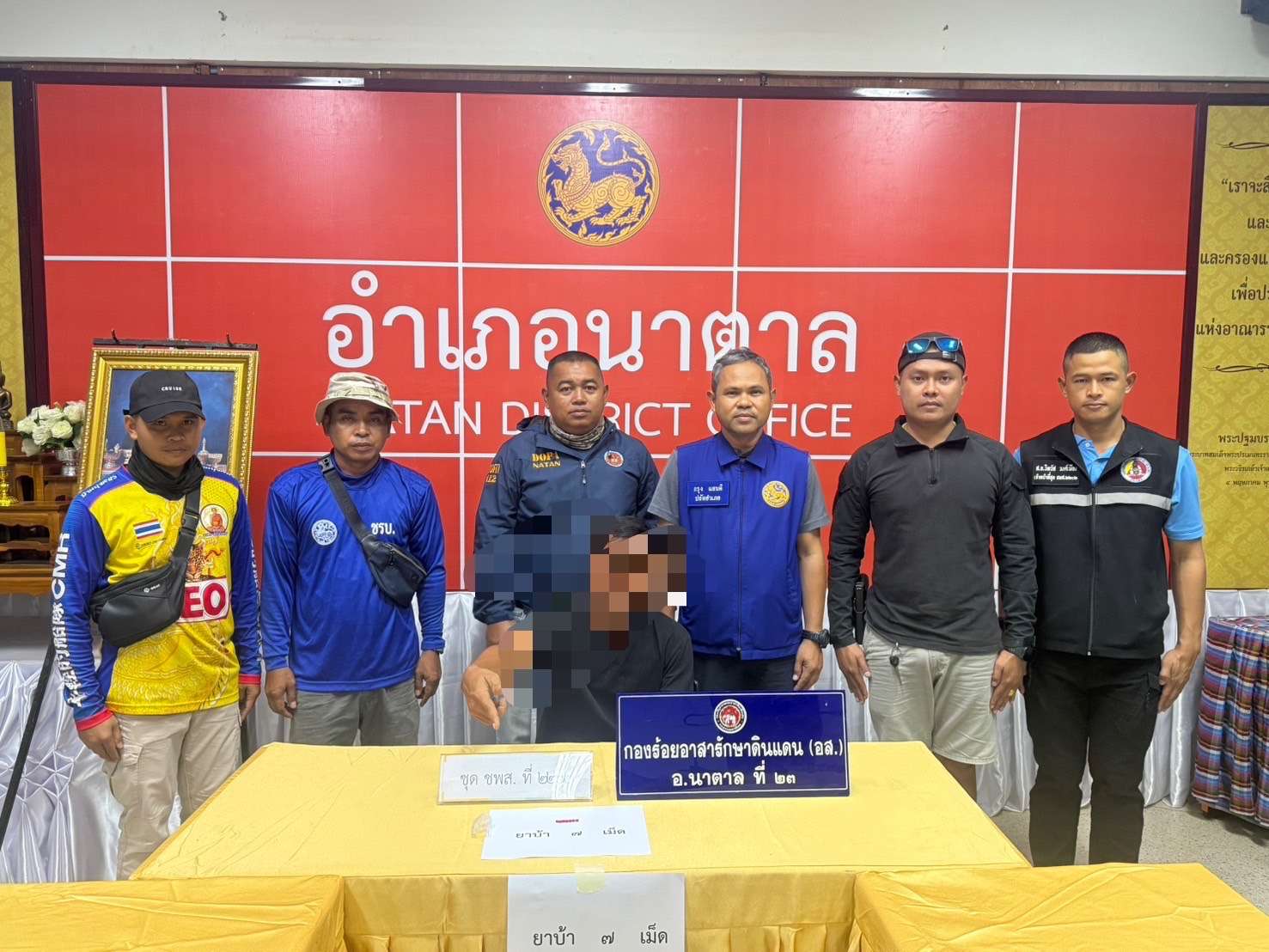 วันที่ 23 กรกฎาคม 2568 เวลา 16.00 น. โดยการอำนวยการของ ว่าที่พันตรีอดิศักดิ์ น้อยสุวรรณ ผู้ว่าราชการจังหวัดอุบลราชธานี นายสมมาฏฐ์ โพธิ ปลัดจังหวัดอุบลราชธานี นายศราวุธ ทรงโฉม ผบ.ร้อย.อส.อ.นาตาล 23/นายอำเภอนาตาล โดยการนำ นายกรุง แยบดี ปลัดอำเภอหัวหน้ากลุ่มงานความมั่นคง ร้อยโทสหรัฐ คำแก่น หน.ชุด ชพส.2202 นำกำลัง อส.กองร้อย อส.อ.นาตาลที่ 23 เจ้าหน้าที่ทหาร ชุดชพส 2202 ดำเนินการตามนโยบายมหาด ผนึกกำลังฝ่ายปกครอง ตำรวจ สาธารณสุขและภาคีเครือข่าย เปิดปฏิบัติการกวาดล้างยาเสพติด “No Drugs No Dealers” อำเภอชายแดน ออกปฏิบัติการการค้นหาผู้เสพ/ผู้ติดยาเสพติด และผู้ค้ายาเสพติด (Re X-ray) ในพื้นที่อำเภอนาตาล