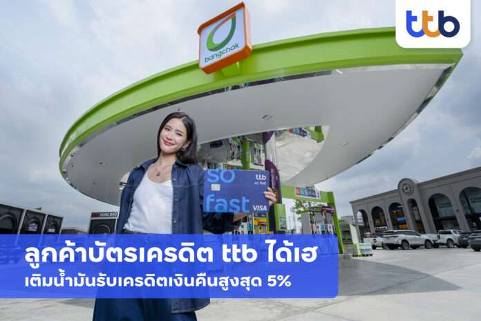 ทีเอ็มบีธนชาต หรือ ทีทีบี จับมือกับพันธมิตร “บางจาก” มอบสิทธิประโยชน์สุดคุ้มเพื่อช่วยลดค่าใช้จ่ายในชีวิตประจำวันให้กับลูกค้าบัตรเครดิต ttb เพียงเติมน้ำมันครบ 600 บาท ขึ้นไป / เซลล์สลิป ที่ปั๊มน้ำมันบางจาก ทั่วประเทศ ตั้งแต่วันที่ 1 กรกฎาคม 2568 – 31 ธันวาคม 2568 รับเครดิตเงินคืนสูงสุด 5% สำหรับผู้ถือบัตรเครดิต ttb และมีสินเชื่อรถยนต์ ttb DRIVE ที่มีประวัติการผ่อนชำระดีและคงสถานะปกติไม่ผิดนัดชำระหนี้ (จำกัด 30 บาท / ครั้ง สูงสุด 4 ครั้ง หรือ 120 บาท / ท่าน / เดือน) และสำหรับผู้ถือบัตรเครดิต ttb ทุกประเภท รับเครดิตเงินคืนสูงสุด 3% (จำกัด 18 บาท / ครั้ง สูงสุด 4 ครั้ง หรือ 72 บาท / ท่าน / เดือน) โดยลูกค้าสามารถรับสิทธิ์ได้ง่าย ๆ เพียงลงทะเบียนผ่านแอป ttb touch ศึกษารายละเอียดเพิ่มเติมของโปรโมชัน ได้ที่ https://www.ttbbank.com/th/promotion/credit-card/auto/bangchak-jul25 และลูกค้ายังสามารถเลือกแบ่งชำระ 0% นาน 3 เดือนได้ด้วยบริการ ttb so goood เพียงมียอดเติมน้ำมัน 1,000 บาท ขึ้นไป / เซลล์สลิป โดยสามารถทำรายการแบ่งชำระได้เองผ่านแอป ttb touch
