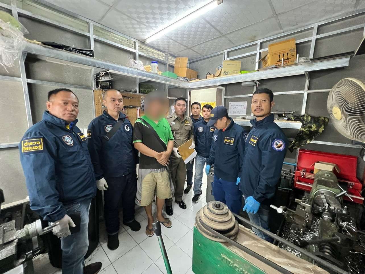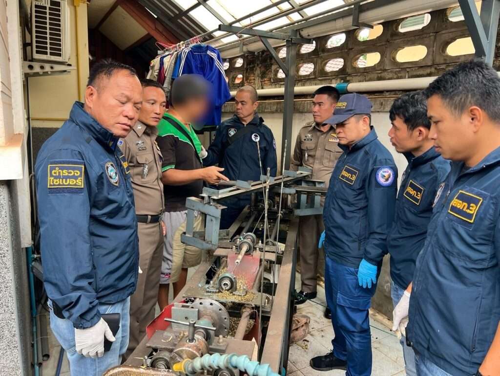 เกี่ยวข้องร่วมแถลงข่าว ตำรวจไซเบอร์ตามรวบผู้ต้องหาตั้งฐานผลิตลำกล้องปืนเถื่อนขายออนไลน์ ณ บริเวณชั้น 1 บก.สอท.2 (เมืองทองธานี)