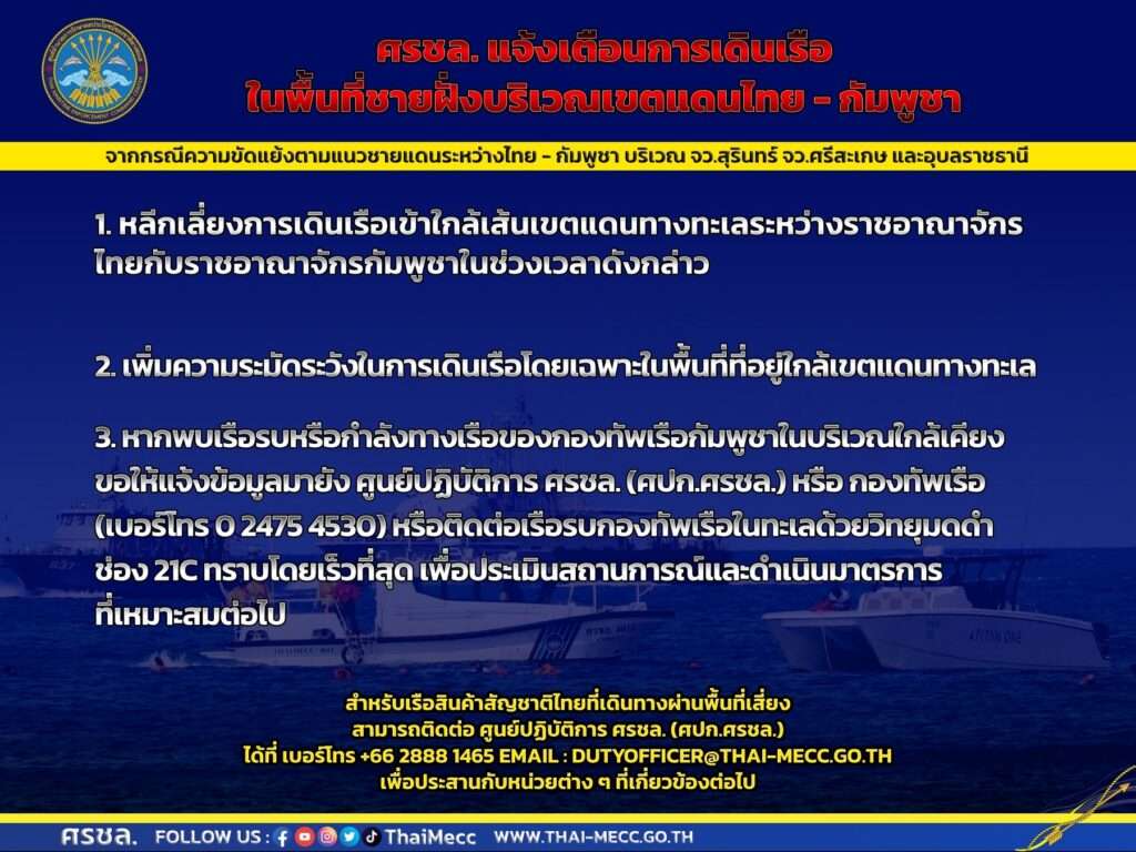 นอกจากนี้ ศูนย์อำนวยการรักษาผลประโยชน์ของชาติทางทะเล หรือ ศรชล. ยังได้ออกหนังสือถึงสมาคมการประมงและสมาคมเจ้าของเรือไทย เพื่อแจ้งเตือนและขอความร่วมมือด้วย
