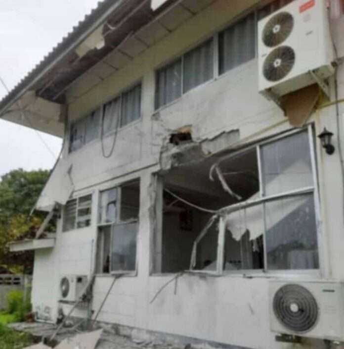 เมื่อวันที่ 26 ก.ค. 68 เวลาประมาณ 15.30 น. ตำรวจ สภ.บึงมะลู จ.ศรีสะเกษ รับแจ้งมีกระสุนปืนใหญ่ตกในพื้นที่ ทำให้โรงพยาบาลส่งเสริมสุขภาพตำบล (รพ.สต.) บ้านซำเม็ง ม.3 ต.เสาธงชัย อ.กันทรลักษ์ จ.ศรีสะเกษ ได้รับความเสียหายอย่างหนักที่ตัวอาคาร เพราะกระสุนทะลุเข้ามาด้านใน โชคดีไม่มีผู้เสียชีวิต หรือบาดเจ็บ