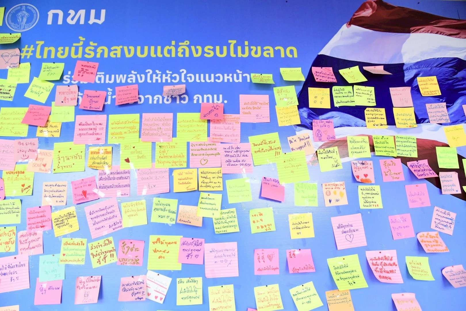 “ขอบคุณทุกคนมากที่ร่วมส่งกำลังใจไปให้ผู้อพยพ จะเห็นได้ว่าคนไทยช่วยกันดีมาก โดยศูนย์ส่งต่อกำลังใจจาก กทม. สู่ผู้อพยพจังหวัดชายแดน แห่งนี้จะมีเจ้าหน้าที่ กทม. จัดทำข้อมูลเป็น Catalog Dimentory อย่างละเอียดเพื่อสามารถตรวจสอบและรวบรวมปริมาณสิ่งของที่บริจาคได้ว่ามีกี่ชิ้น กี่ประเภท และจะมีเจ้าหน้าที่ กทม.ให้บริการตลอด 24 ชม. แม้จะเป็นวันหยุดยาว ก็ขอเชิญชวนทุกท่านมาร่วมบริจาคส่งกำลังใจไปให้ผู้อพยพด้วยกันกับ กทม.” ผู้ว่าฯ ชัชชาติ กล่าว