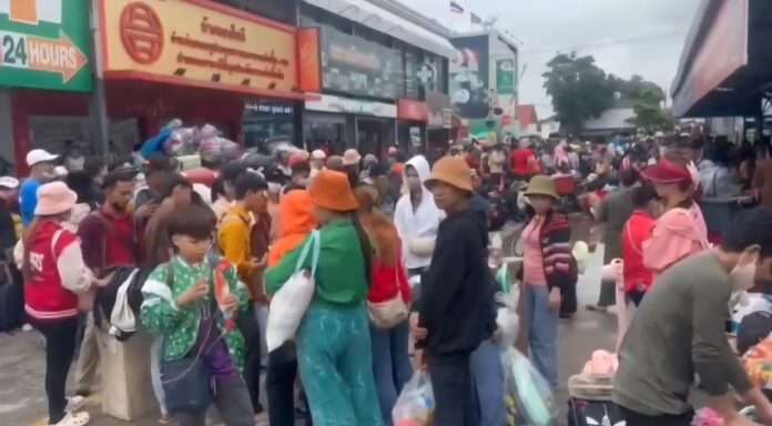 พร้อมสัมภาระที่อ้างว่ากลัวสงครามและกลัวถูกคนไทยทำร้าย จึงแห่เดินทางมาเพื่อกลับประเทศกัมพูชาจนเนืองแน่น บริเวณหน้าทางเข้าอาคารผู้โดยสารขาออก ด่าน ตม.อรัญประเทศ
