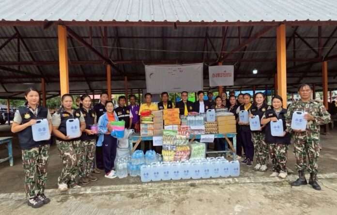 ขณะเดียวกัน นางสาววรรณธิภา จันทร์กลม หัวหน้าหน่วยจัดการต้นน้ำห้วยโตง-ห้วยด่าน พร้อมด้วยจิตอาสา 904 ได้สนับสนุนโรงครัวพระราชทาน ณ ศูนย์พักพิงชั่วคราว และนำสิ่งของบริจาคจาก มทบ.25 ไปแจกจ่ายผู้ได้รับผลกระทบในจังหวัดศรีสะเกษ โดยมีเจ้าหน้าที่จากหน่วยงานต่างๆ ร่วมให้ความช่วยเหลือและช่วยทำอาหารที่ศูนย์พักพิงชั่วคราวอย่างแข็งขัน