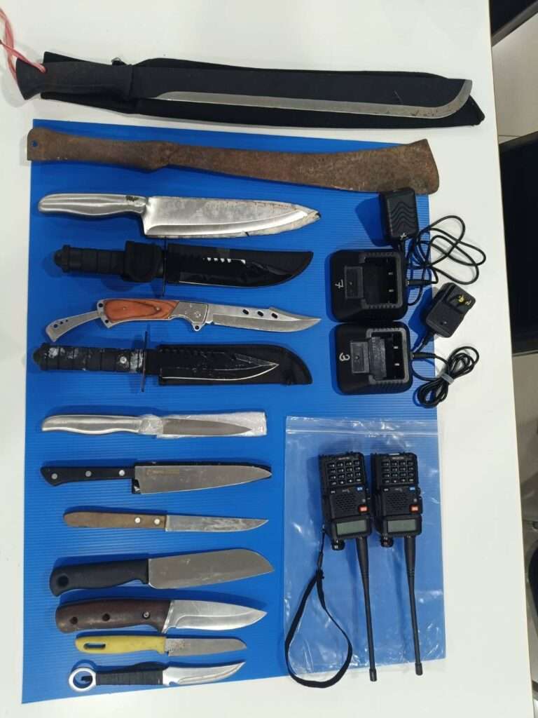 ภายหลังจากการตรวจค้น พบอาวุธมีดจากมทร.วิทยาเขตอุเทนถวายทั้งหมด 13 เล่มและวิทยุสื่อสารสีดำ 2 เครื่อง โดยของทั้งหมดถูกซุกซ่อนไว้ตามพุ่มไม้ ซอกตึกและใต้อาคารเรียน และพบอาวุธมีด 3เล่ม จากเทคโนโลยีปทุมวัน ซึ่งของกลางทั้งหมดไม่มีใครแสดงตนเป็นเจ้าของ จึงตรวจยึดไว้เป็นของกลาง