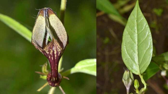 สีเขียวของกลีบดอกตัดกับลวดลายม่วงแดงราวกับภาพวาด บางคนอาจมองเห็นเป็นหน้ากาก บางคนเปรียบเป็นโคมไฟจีน แต่ไม่ว่าอย่างไร มันคือศิลปะของวิวัฒนาการที่ไม่ได้สร้างมาเพื่อความงามเท่านั้น—เพราะลวดลายและรูปร่างพิเศษนี้ อาจมีหน้าที่ดึงดูดแมลงผสมเกสรเฉพาะชนิด ที่สอดคล้องกับวงจรชีวิตอันซับซ้อนของพืชเฉพาะถิ่น