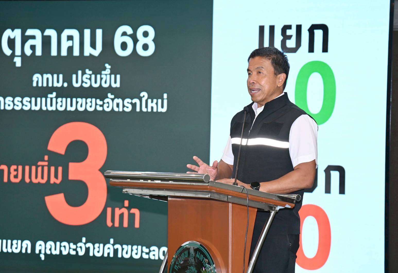 (30 ก.ค. 68) นายพรพรหม วิกิตเศรษฐ์ ที่ปรึกษาของผู้ว่าราชการกรุงเทพมหานคร และผู้บริหารด้านความยั่งยืนของกรุงเทพมหานคร เปิดเผยว่า หลังจากที่กรุงเทพมหานครได้ตราข้อบัญญัติกรุงเทพมหานคร เรื่อง ค่าธรรมเนียมการให้บริการในการจัดการสิ่งปฏิกูลและมูลฝอยตามกฎหมายว่าด้วยการสาธารณสุข พ.ศ. 2568 เพื่อเพิ่มประสิทธิภาพการจัดการขยะ เน้นนำขยะมาใช้ประโยชน์ ลดการใช้ทรัพยากรและลดผลกระทบต่อสุขภาพอนามัยของประชาชน โดยใช้กลไกสร้างแรงจูงใจให้ประชาชน รวมถึงผู้ประกอบการร่วมมือลดและคัดแยกขยะที่แหล่งกำเนิด สอดคล้องกับสภาวการณ์และค่าใช้จ่ายในปัจจุบัน โดยจะเริ่มจัดเก็บค่าธรรมเนียมขยะอัตราใหม่จากเดิม 20 บาทต่อเดือน เป็น 60 บาทต่อเดือน ตั้งแต่เดือนตุลาคม 2568 เป็นต้นไป พร้อมกันนั้น กทม. ได้เชิญชวนประชาชนเข้าร่วมโครงการบ้านนี้ไม่เทรวม : แยกขยะลดค่าธรรมเนียม โดยเชิญชวนประชาชนลงทะเบียนเข้าร่วมโครงการฯ ผ่านทางแอปพลิเคชัน BKK WASTE PAY ล่าสุด กทม. ได้อัปเวอร์ชันแอปฯ ใหม่ ปรับไอคอนของแอปพลิเคชัน พร้อมปรับปรุงระบบเพื่อรองรับการให้บริการเกี่ยวกับการชำระค่าธรรมเนียมขยะอย่างเต็มรูปแบบ อีกทั้งเพิ่มฟีเจอร์ที่อำนวยความสะดวกให้ประชาชนสามารถใช้งานได้อย่างสะดวกมากขึ้น ซึ่งประชาชนที่สมัครเข้าร่วมโครงการฯ แล้ว สามารถส่งภาพการแยกขยะ 4 ประเภท ประกอบด้วย ขยะเศษอาหาร ขยะรีไซเคิล ขยะอันตราย (ถ้ามี) และขยะทั่วไป ได้ตั้งแต่วันที่ 1 สิงหาคม 2568 เป็นต้นไป