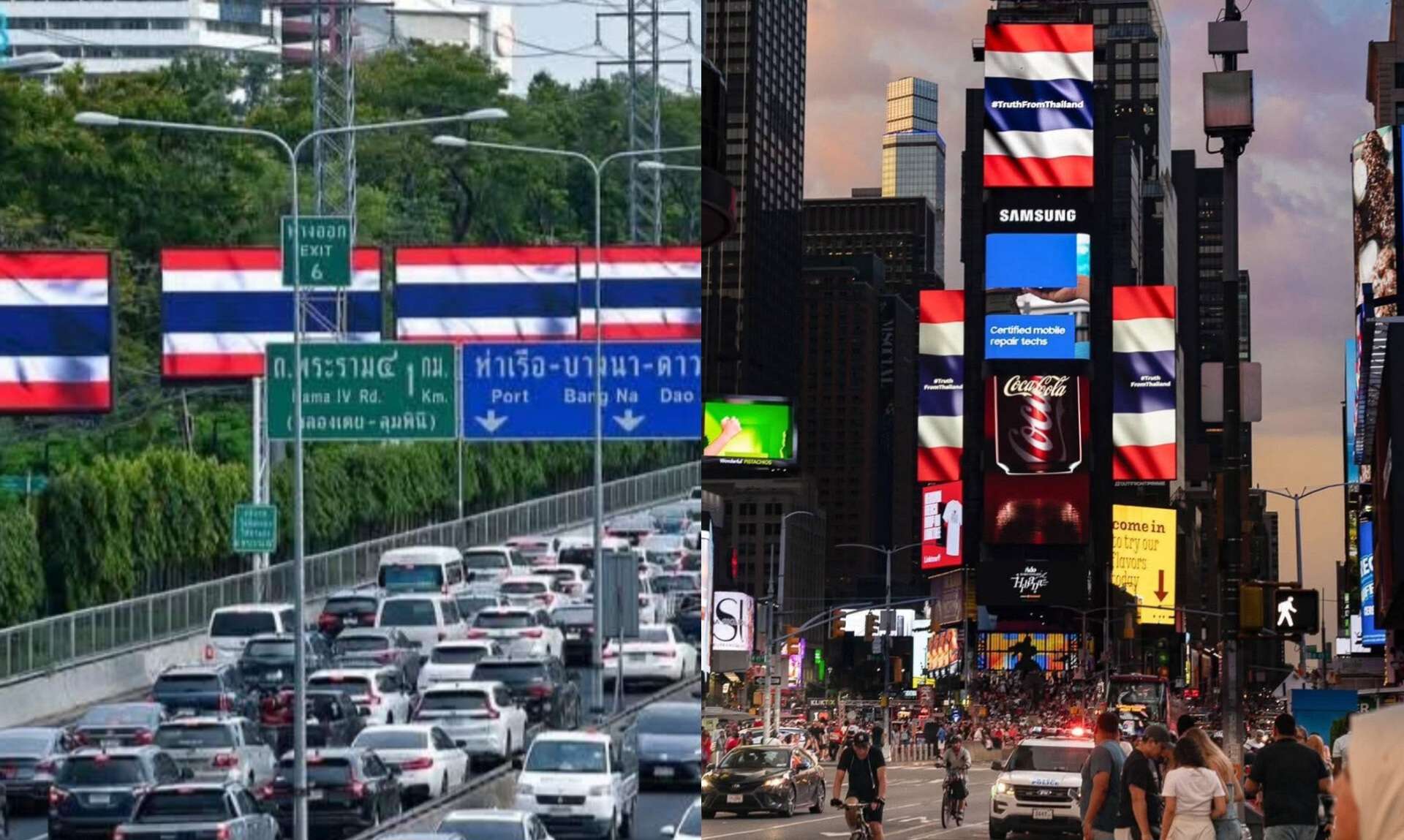 ผู้คนมากมายต่างตั้งคำถามว่า ใครคือผู้อยู่เบื้องหลังการขึ้นภาพธงชาติไทย พร้อมแฮชแท็ก #TruthFromThailand บนจอโฆษณาขนาดยักษ์ใจกลางไทม์สแควร์ กรุงนิวยอร์ก สหรัฐอเมริกา ซึ่งเป็นหนึ่งในพื้นที่โฆษณาที่แพงและโดดเด่นที่สุดในโลก