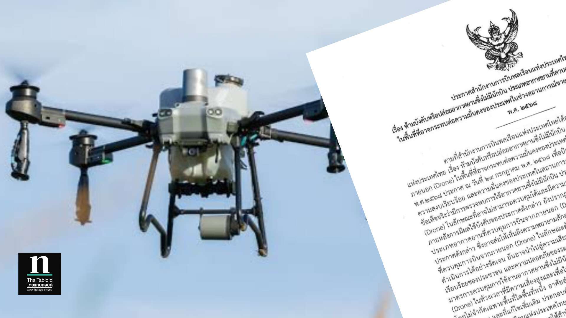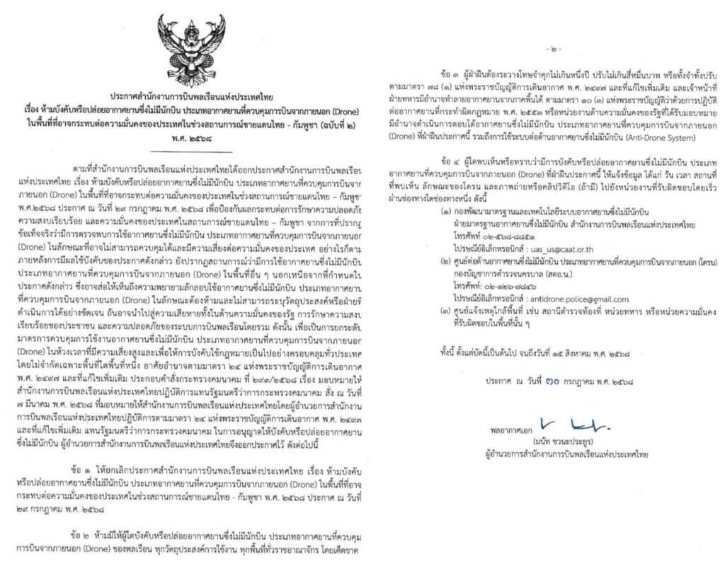 CAAT ออกประกาศ #ห้ามบินโดรนทั่วราชอาณาจักร ไม่ว่าด้วยวัตถุประสงค์ใด ด้วยเหตุผลของความมั่นคง ตั้งแต่วันที่ 30 กรกฎาคม จนถึงวันที่ 15 สิงหาคม หรือจนกว่าจะประกาศเปลี่ยนแปลง