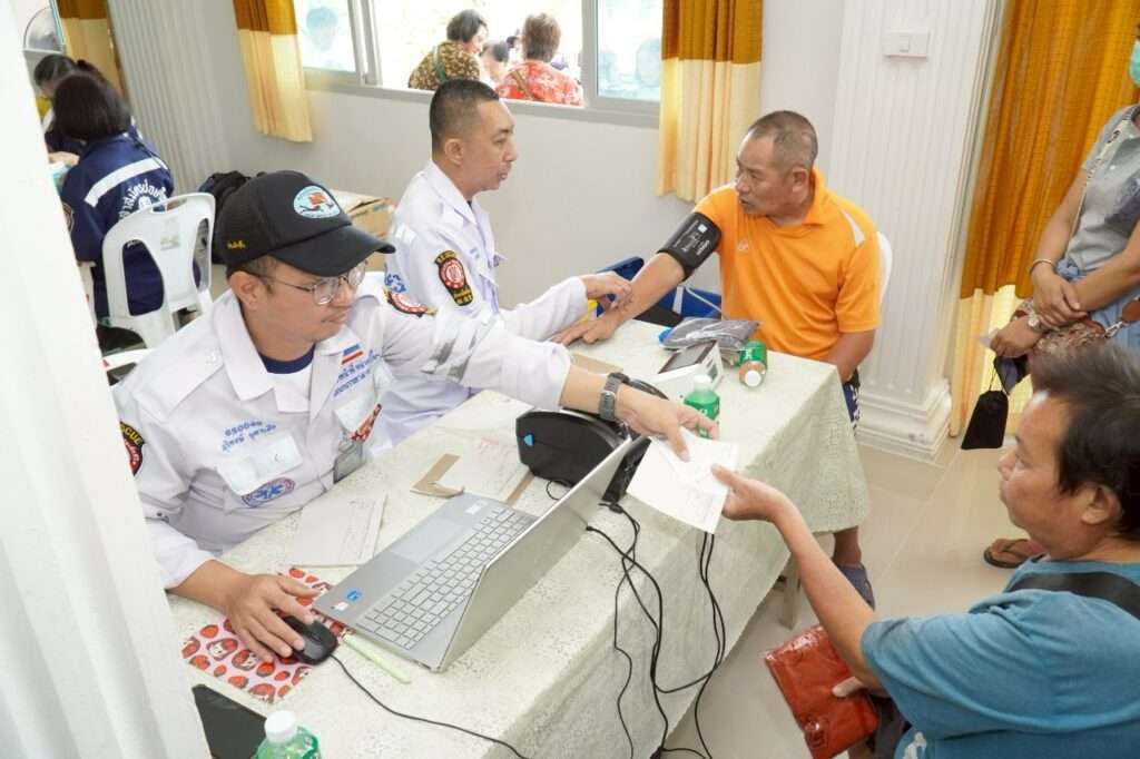 โดยมีประชาชน เยาวชน และผู้แทนจากสถาบันการศึกษา เป็นผู้รับมอบ อีกทั้ง มูลนิธิฯ ยังได้จัดหน่วยแพทย์สงเคราะห์ชุมชน นำทีมแพทย์อาสาฯ เจ้าหน้าที่หน่วยแพทย์ ทีมบรรเทาสาธารณภัย (กู้ชีพ) และอาสาสมัครลงพื้นที่ให้บริการประชาชนฟรี ประกอบด้วย บริการตรวจรักษาโรคทั่วไป จ่ายยา ทันตกรรม คัดกรองเบาหวาน กิจกรรมนันทนาการ ตรวจวัดสายตาพร้อมแจกแว่น บริการตัดผม ฯลฯ ณ บริเวณห้องประชุมอาคารพบโชคคอมเพล็กซ์ วัดห้วยปลากั้ง อำเภอเมือง จังหวัดเชียงราย
