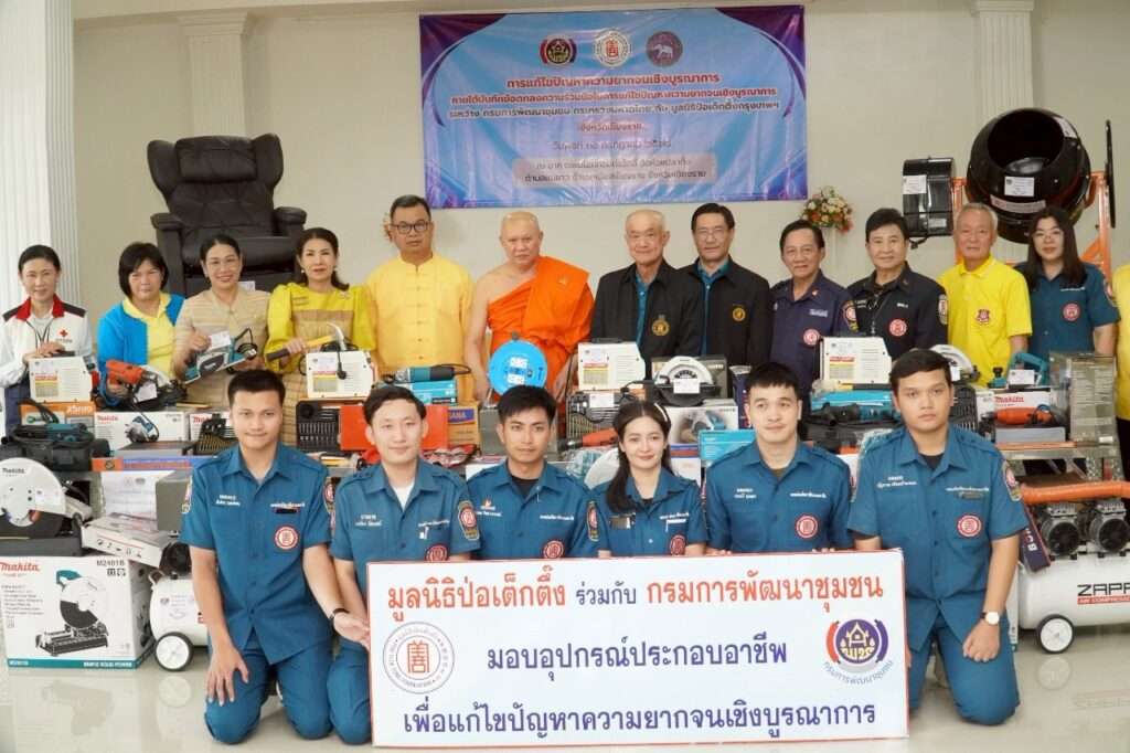 โครงการแก้ไขปัญหาความยากจนเชิงบูรณาการ มูลนิธิป่อเต็กตึ๊ง ได้สนับสนุนอุปกรณ์ประกอบอาชีพ ช่วยเหลือครัวเรือนยากจน ตามบันทึกข้อตกลงความร่วมมือแก้ไขปัญหาความยากจน ระหว่างกรมการพัฒนาชุมชนและมูลนิธิป่อเต็กตึ๊ง ซึ่งมูลนิธิฯ ได้จัดงบประมาณดำเนินการเพื่อจัดหาวัสดุอุปกรณ์ประกอบอาชีพมอบให้แก่ครัวเรือนยากจน ให้สามารถประกอบอาชีพเลี้ยงตนเองและครอบครัว โดยในกลุ่มเป้าหมายแรกดำเนินการในพื้นที่ภาคกลาง 17 จังหวัด รวม 98 ครัวเรือน ต่อมาได้ดำเนินการในพื้นที่จังหวัดทางภาคเหนือ 17 จังหวัด รวม 230 ครัวเรือน และภาคตะวันออกเฉียงเหนือ รวม 20 จังหวัด จำนวน 485 ครัวเรือน รวมดำเนินการไปแล้ว 3 ภาค รวม 54 จังหวัด 813 ครัวเรือน รวมงบประมาณกว่า 15.6 ล้านบาท
