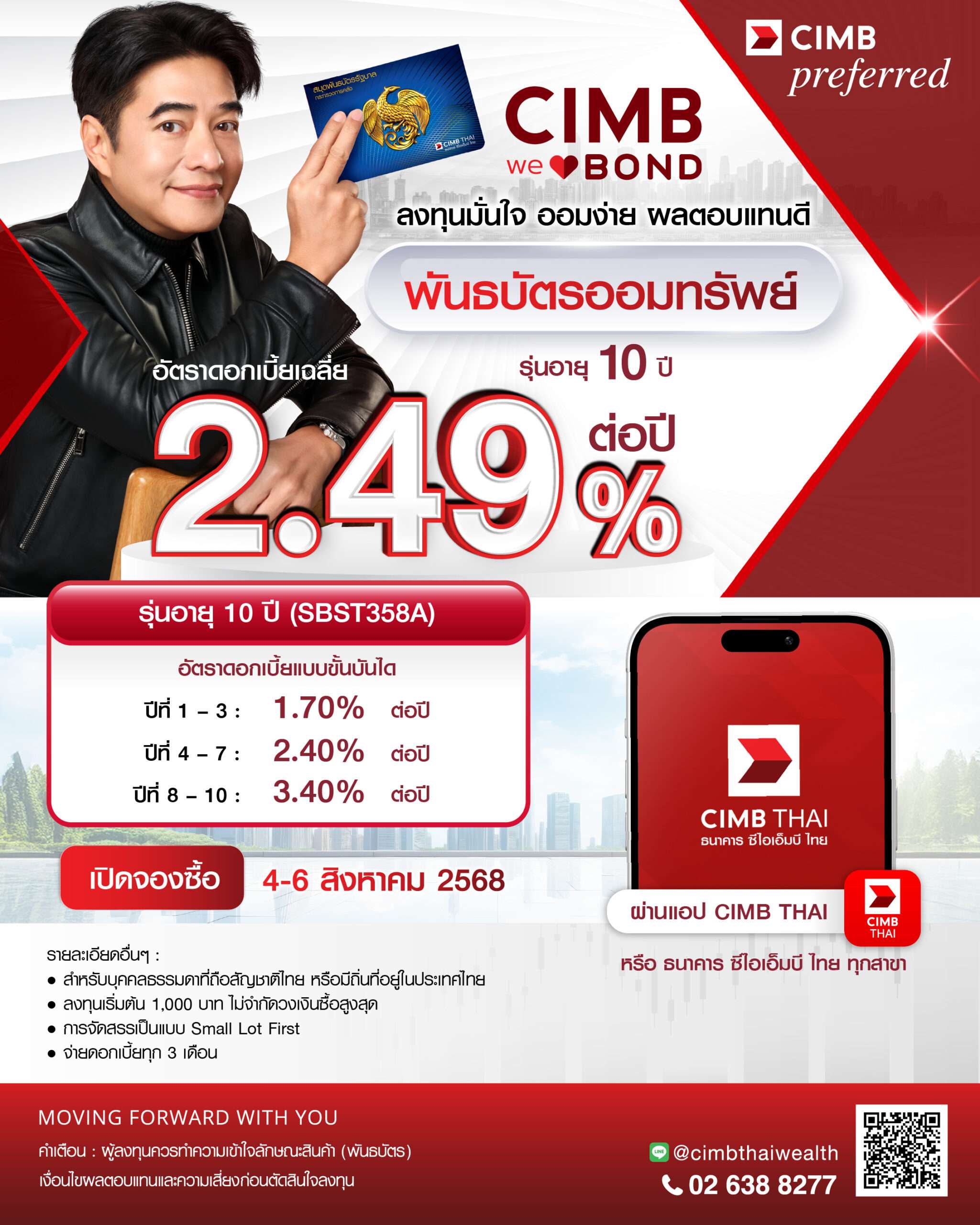 CIMB THAI ชวนจองซื้อพันธบัตรออมทรัพย์ 4-6 ส.ค. 68 ผ่านแอปง่ายแค่ปลายนิ้ว